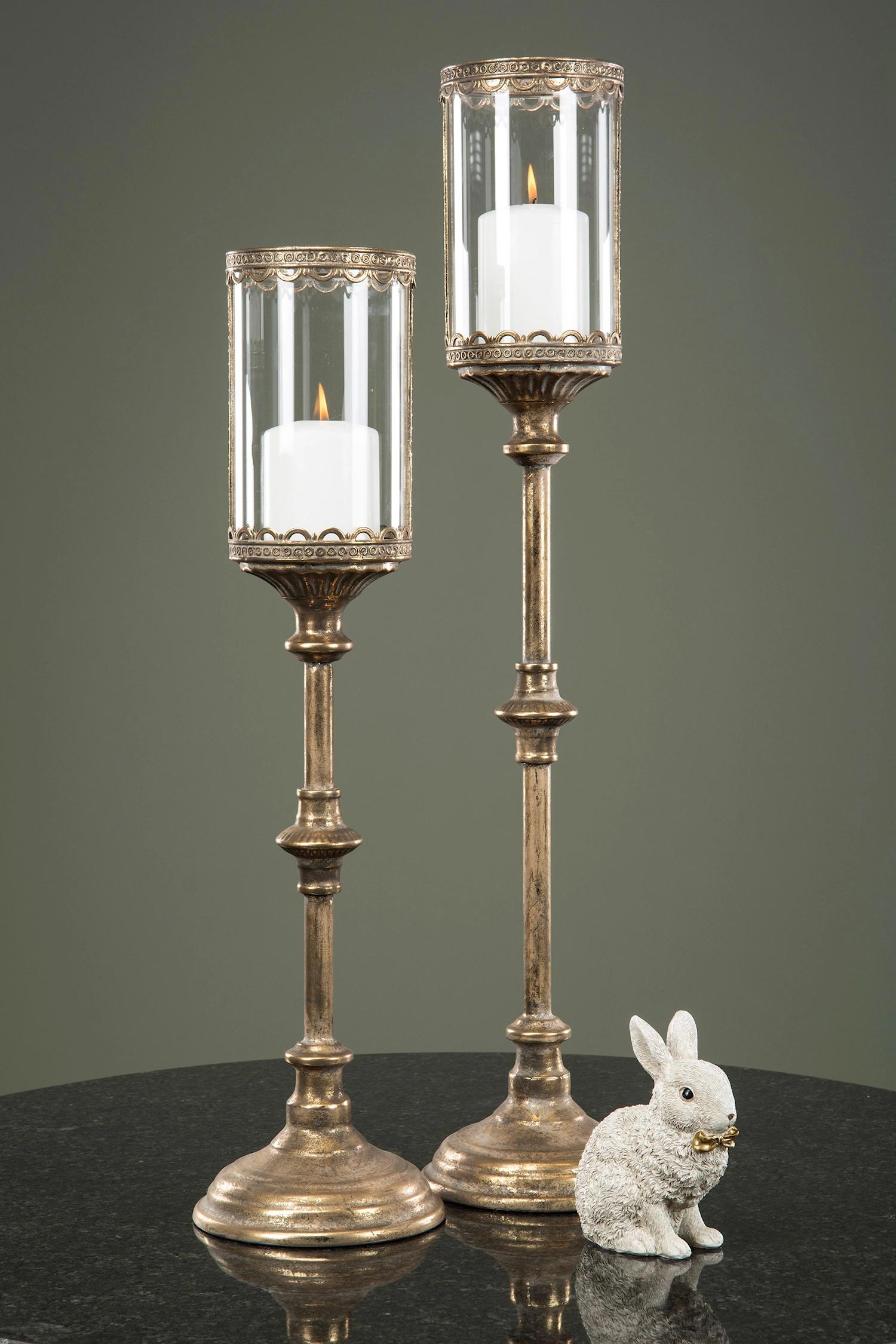 En ljuslykta med en hög, elegant metallfot och cylinderformat glas som skyddar ljuset. För dig som vill lyfta levande ljus till nästa nivå. Matcha gärna med den lägre storleken.