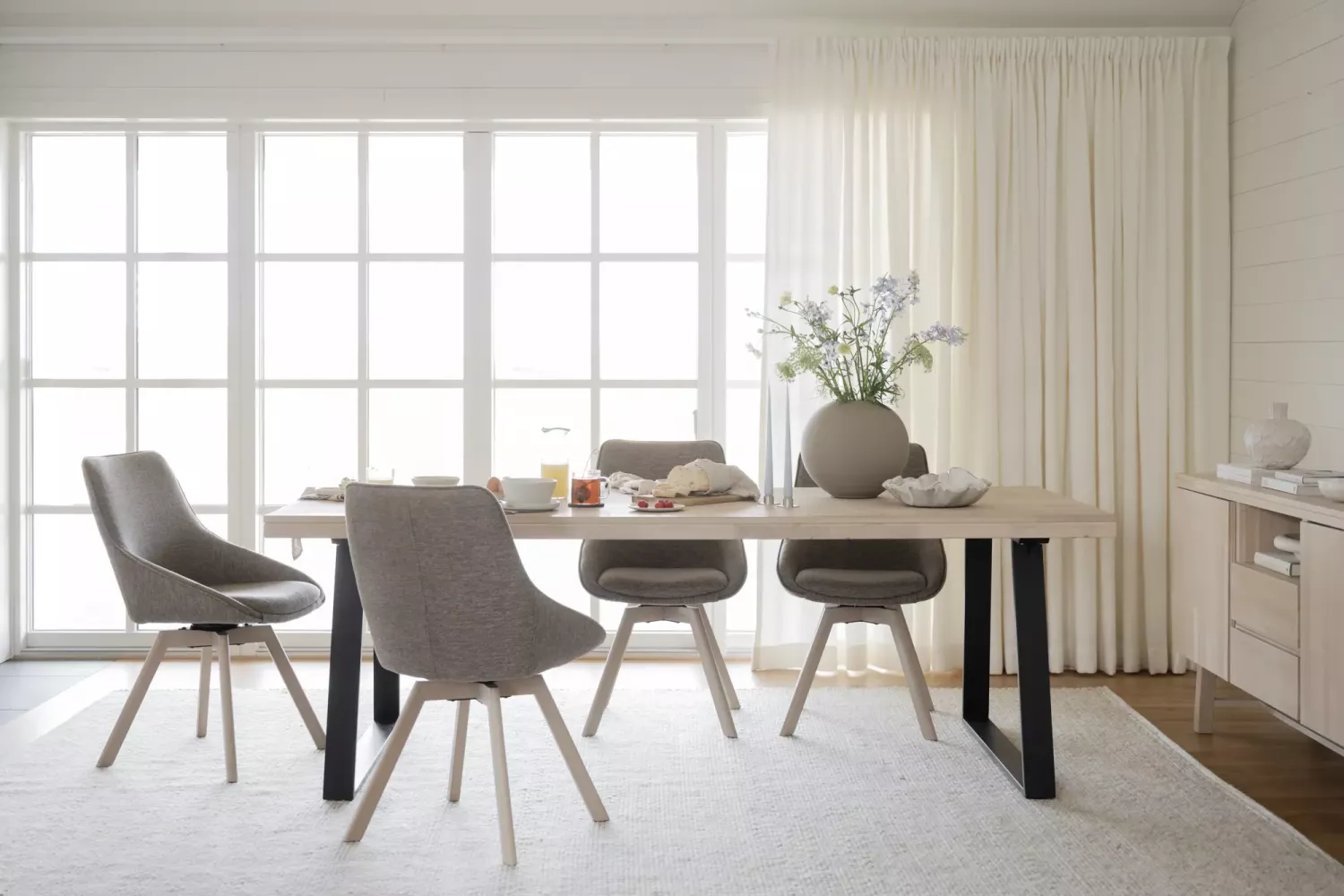 Populära Alison stol med träunderrede och snurrfunktion.