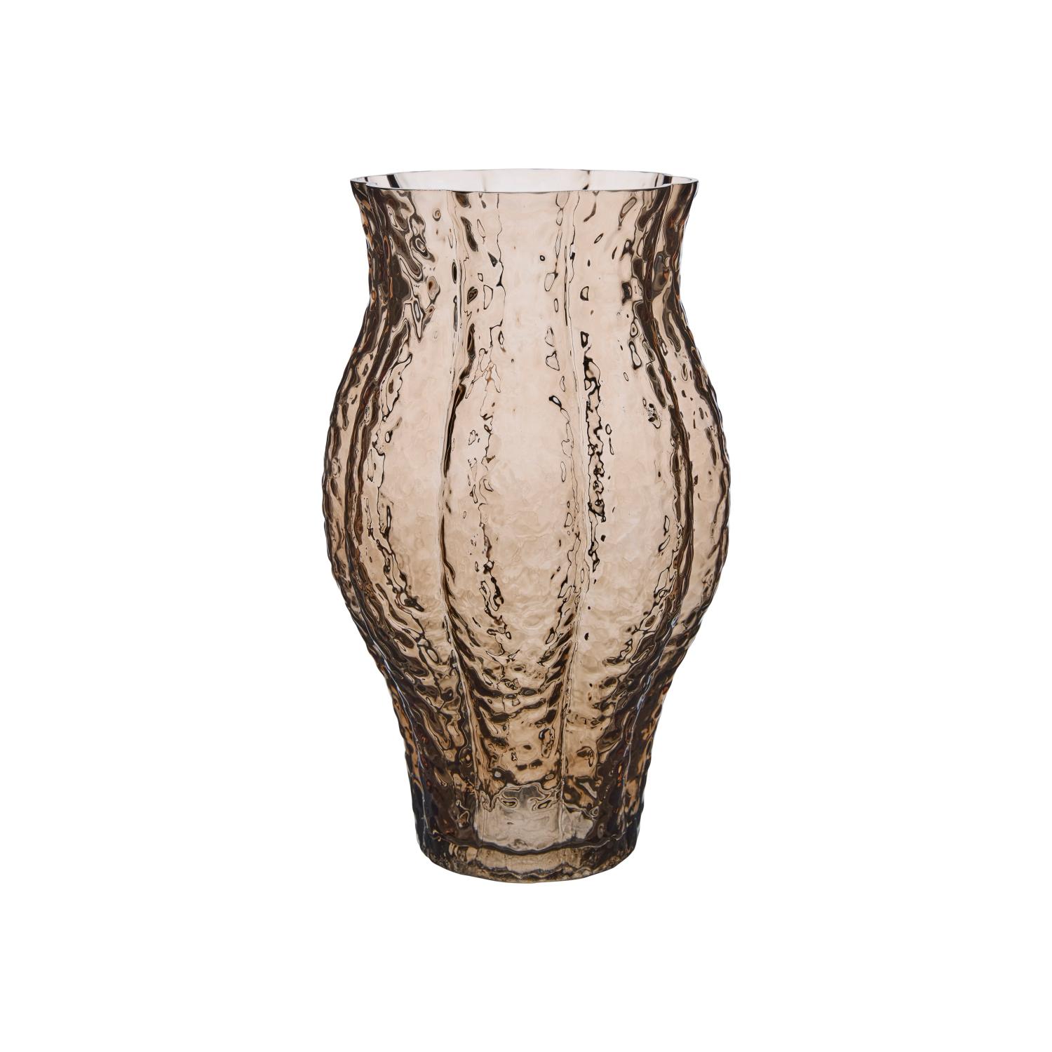 Ståtlig vas i brunfärgat glas med struktur. En perfekt vas till den högre buketten. Eller varför inte använda den till påskriset.