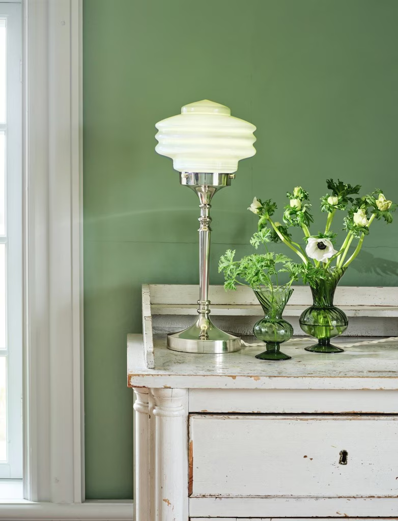 Den mjukt gröna färgen tillför en lugnande och naturlig känsla som passar både modern och klassisk inredning.