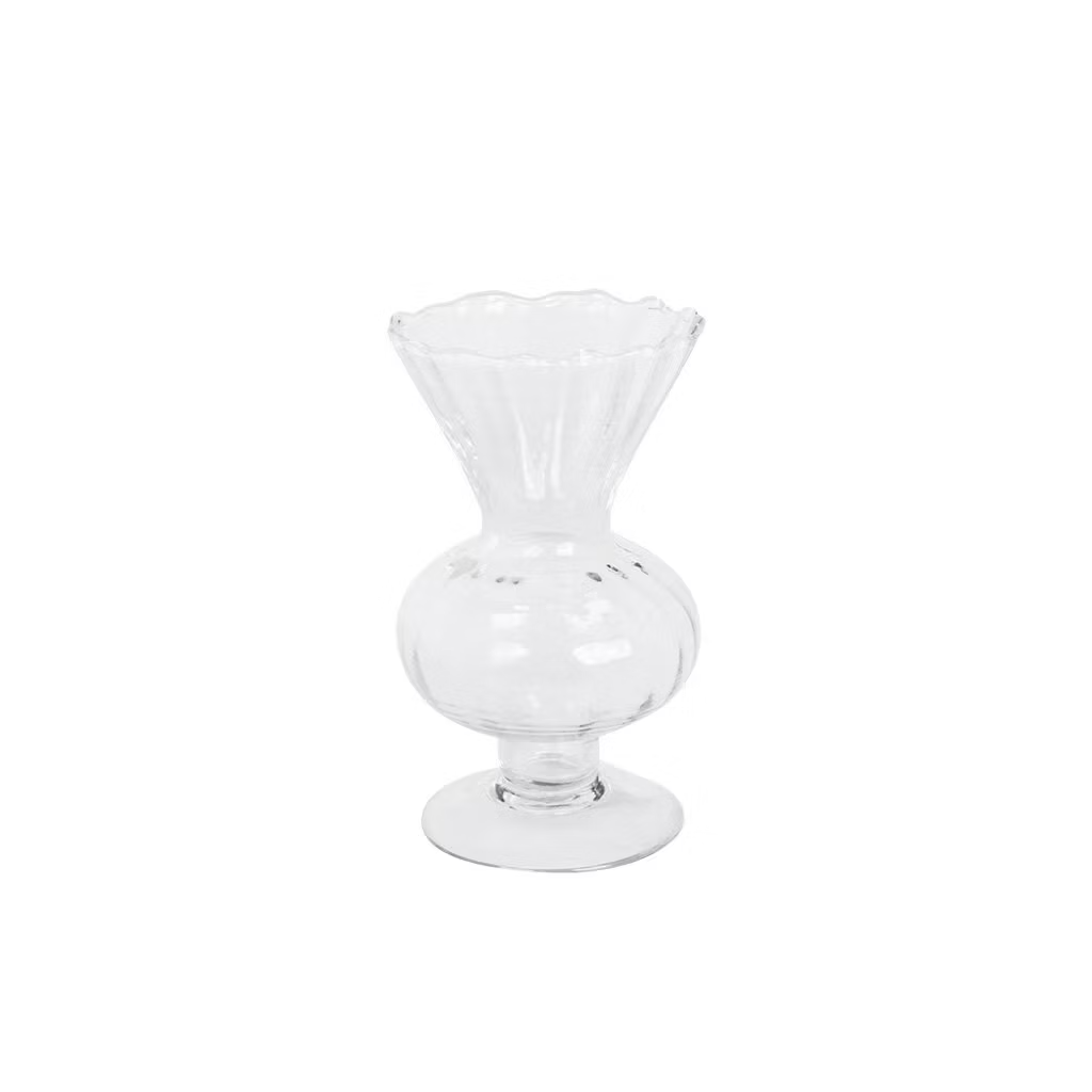 En vacker glasvas som är en perfekt kombination av konstnärlig design och funktionalitet. Denna vackra vas på fot passar både modern och klassisk inredning. Tillverkad av 60% återvunnet munblåst glas.