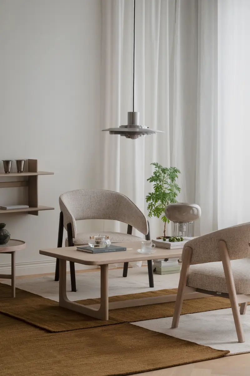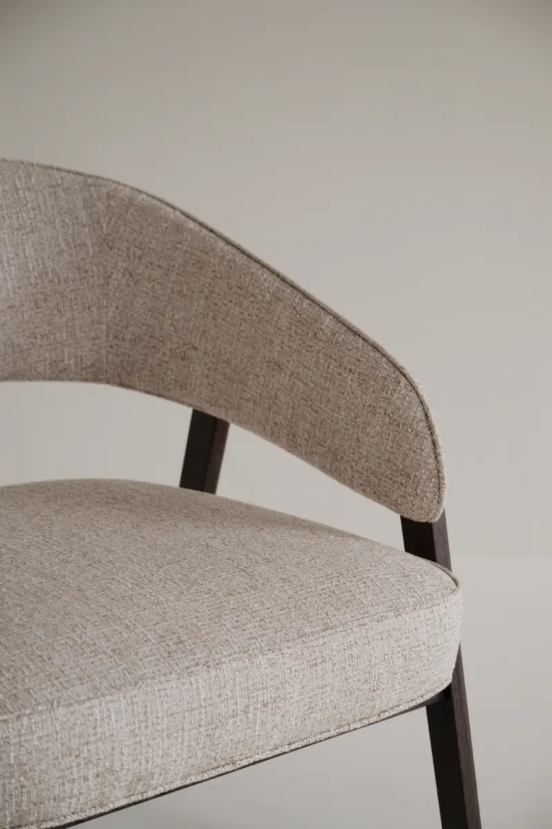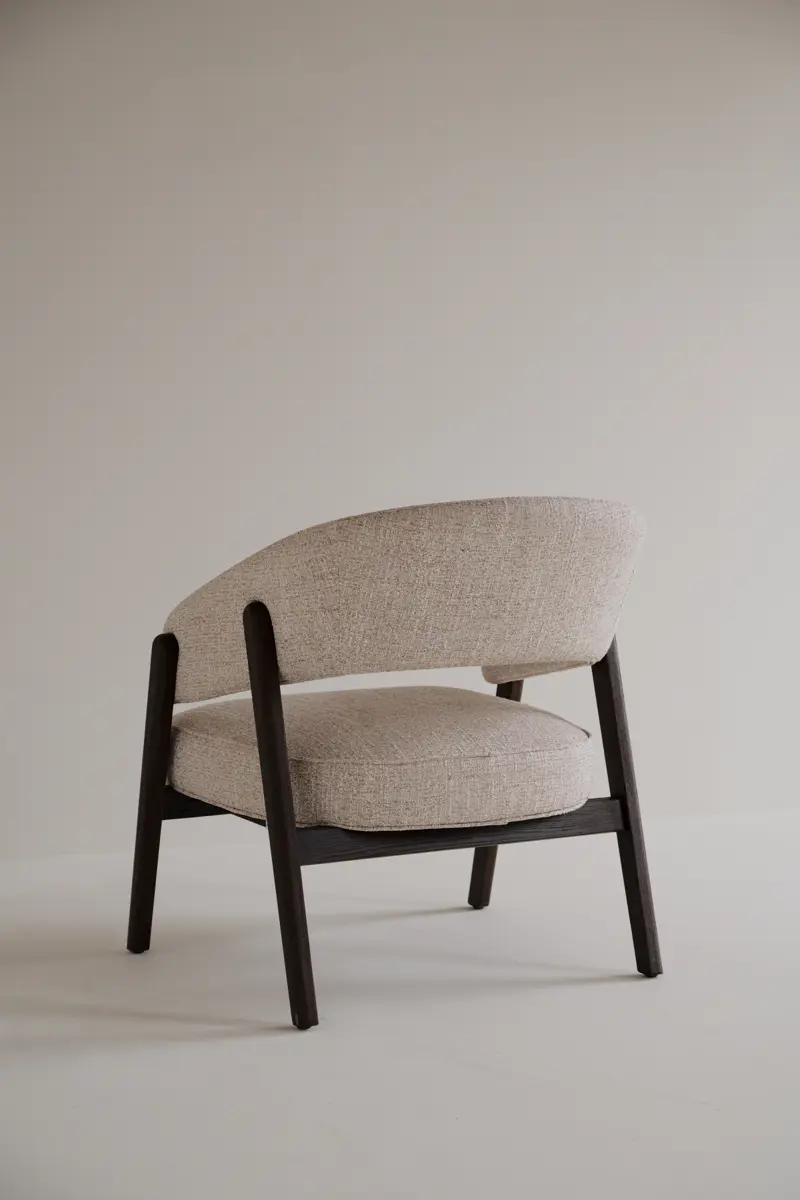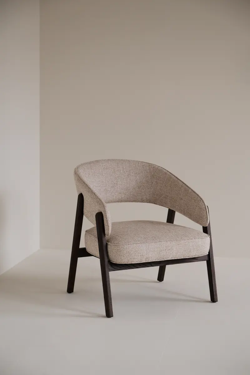 Den generösa sittytan och de mjukt svepande linjerna gör fåtöljen till en plats där man gärna slår sig ner för att läsa, prata eller bara vila en stund. Den öppna ryggen bidrar till en lätthet i uttrycket, samtidigt som formen ger ett behagligt stöd som omsluter kroppen på ett naturligt sätt.