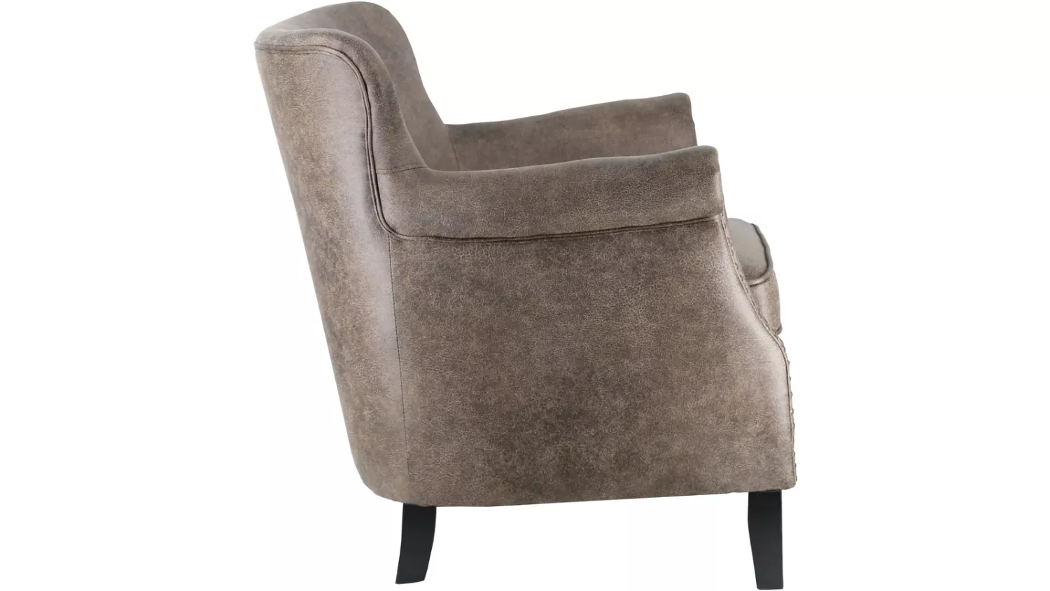 Baron är en nätt vintagefåtölj i tyg med en trevlig sittkomfort. Dekorspik och tyget ger den rätta vintage känslan.