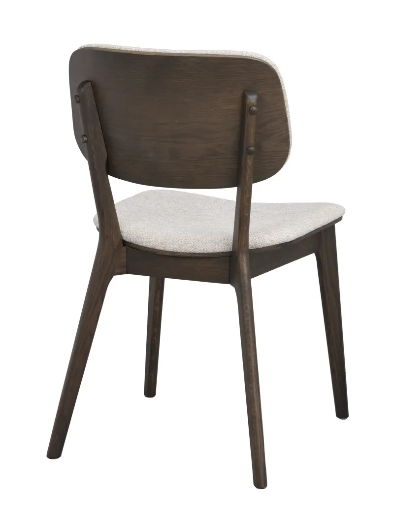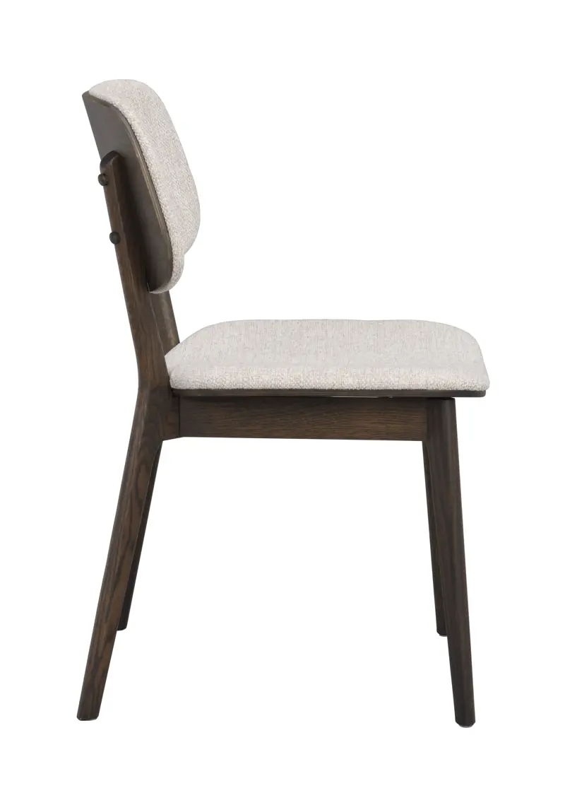 Barrett stol i brun ek kombinerar genomarbetad design med enastående sittkomfort. Med sin generösa, svängda ryggbricka och lätt kupade sits bjuder Barrett in till långa, bekväma middagar. Den rundade profilen och stoppningen i både sits och rygg ger en mjuk och stödjande känsla.