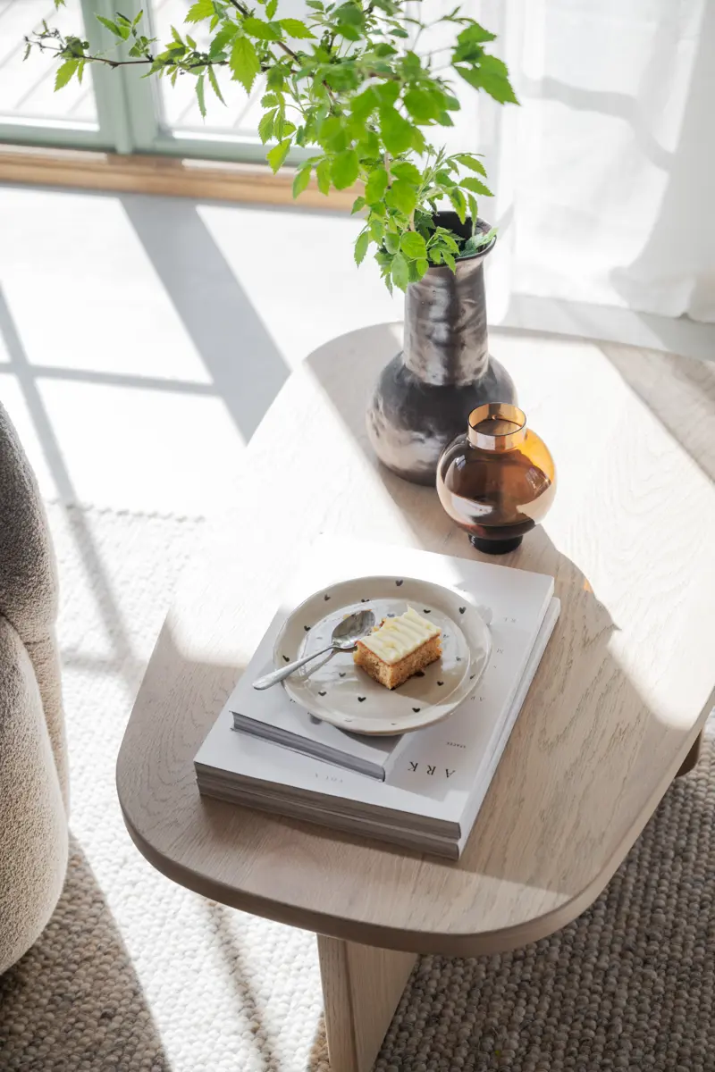 Billings soffbord är ett harmoniskt möte mellan rundade former och en gedigen konstruktion. Det är tillverkat i vitpigmenterad ekfaner och behandlat med olja som lyfter fram träets naturliga ådring och unika karaktär. Billings soffbord i den mindre storleken är utmärkt som ett nätt soffbord, som ett sidobord eller för att kombinera med det större soffbordet, 118x73 cm, i samma kollektion. Den organiska formen på soffbordet skapar en harmonisk helhet i det moderna vardagsrummet.