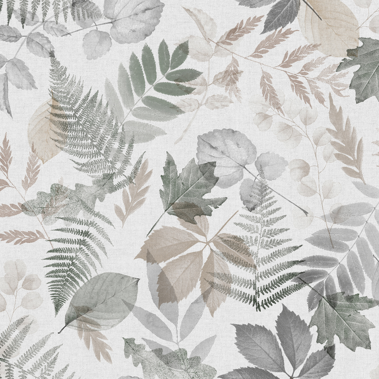 Vacker tryckt mönstrad metervara med vit bottenfärg och ett stort härligt bladmönster av olika träsorter i färgerna grå, grön och beige. Detta tyget ger ditt hem en ordentlig omfamnande känsla och passar i de flesta rum. Detta tyget funkar till både gardinlängder och gardinkappor.