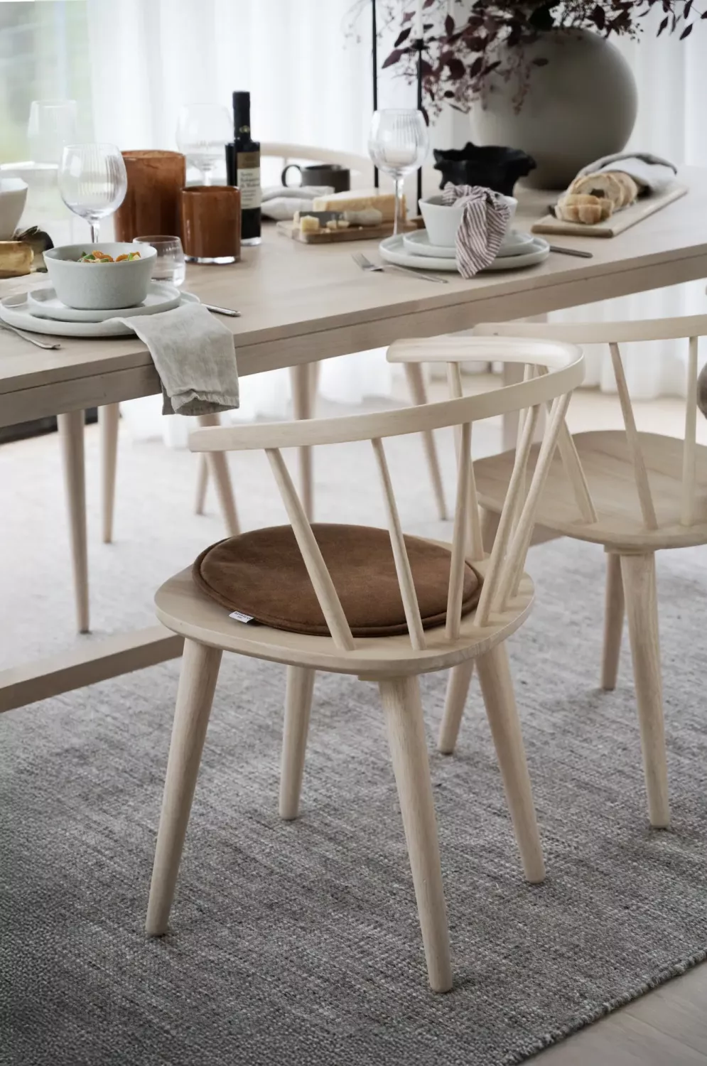 Material: Massivt gummiträ i vitpigmenterad-bets som lackats.