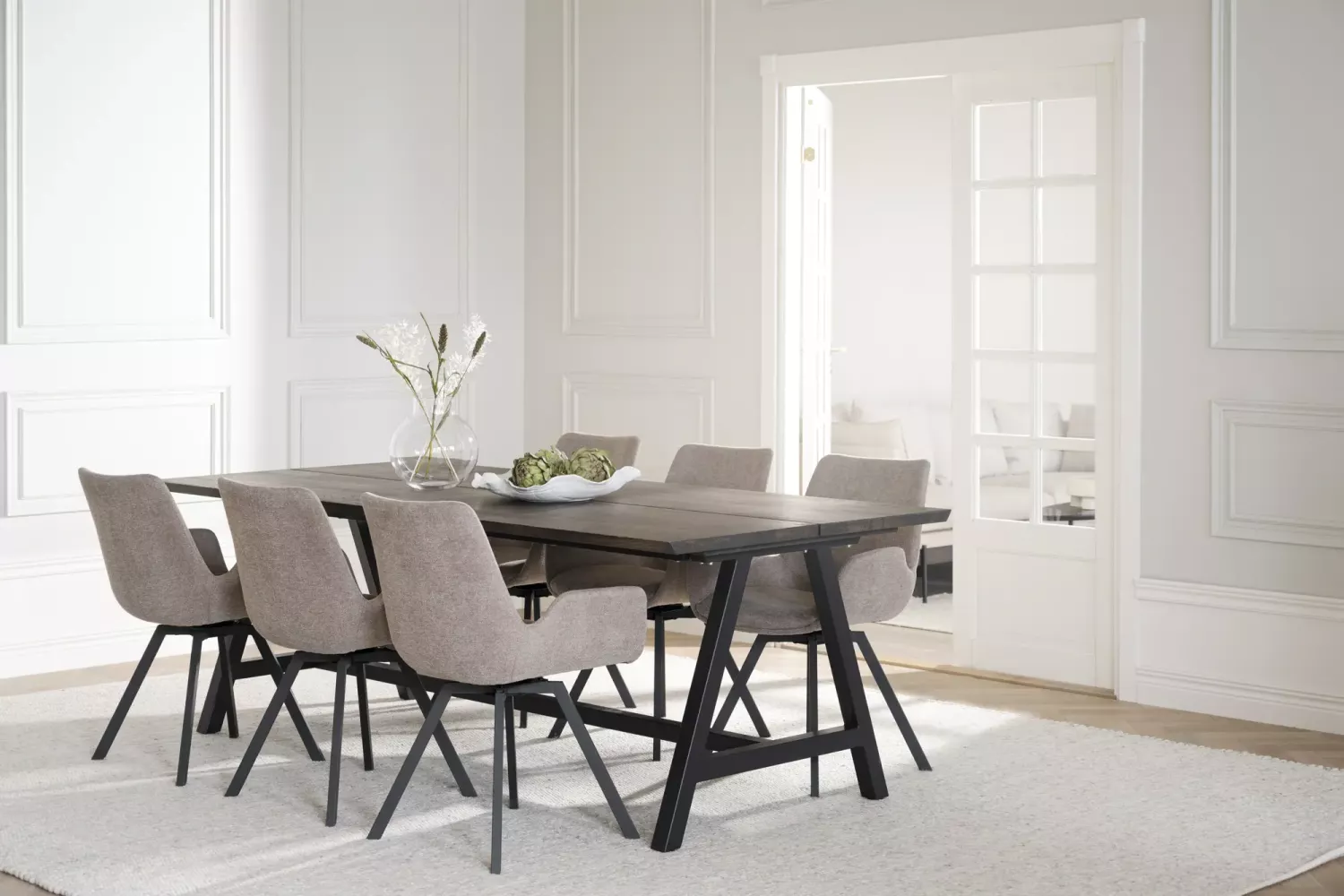 Den stabila benställningen ger bordet en trygg känsla.