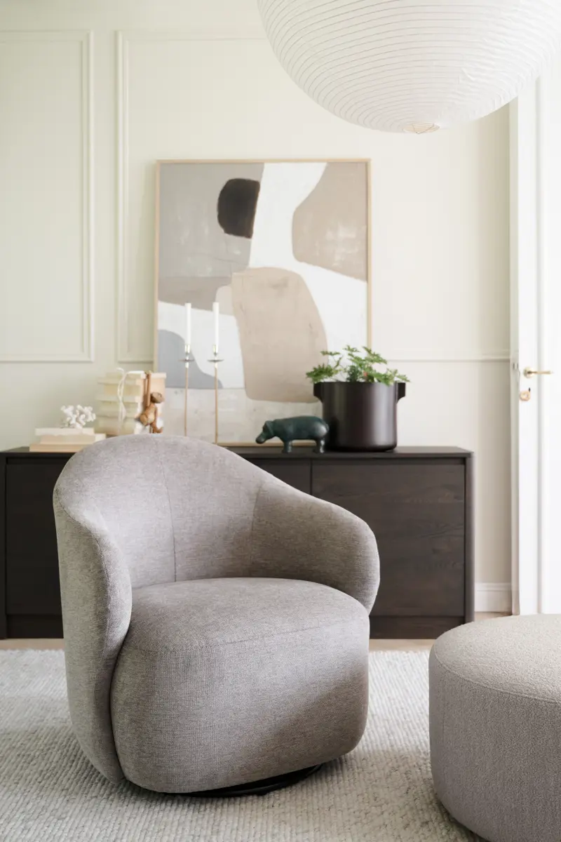 Chapeltown loungestol i beige textil är en stoppad fåtölj med mjuka, inbjudande former, dekorativa textilsömmar och bekväma armstöd för extra komfort. Den är designad för att ge ett omslutande stöd, perfekt för långa stunder av avkoppling. Tack vare snurrfunktionen är Chapeltown vacker från alla vinklar och blir en snygg detalj i rummet.