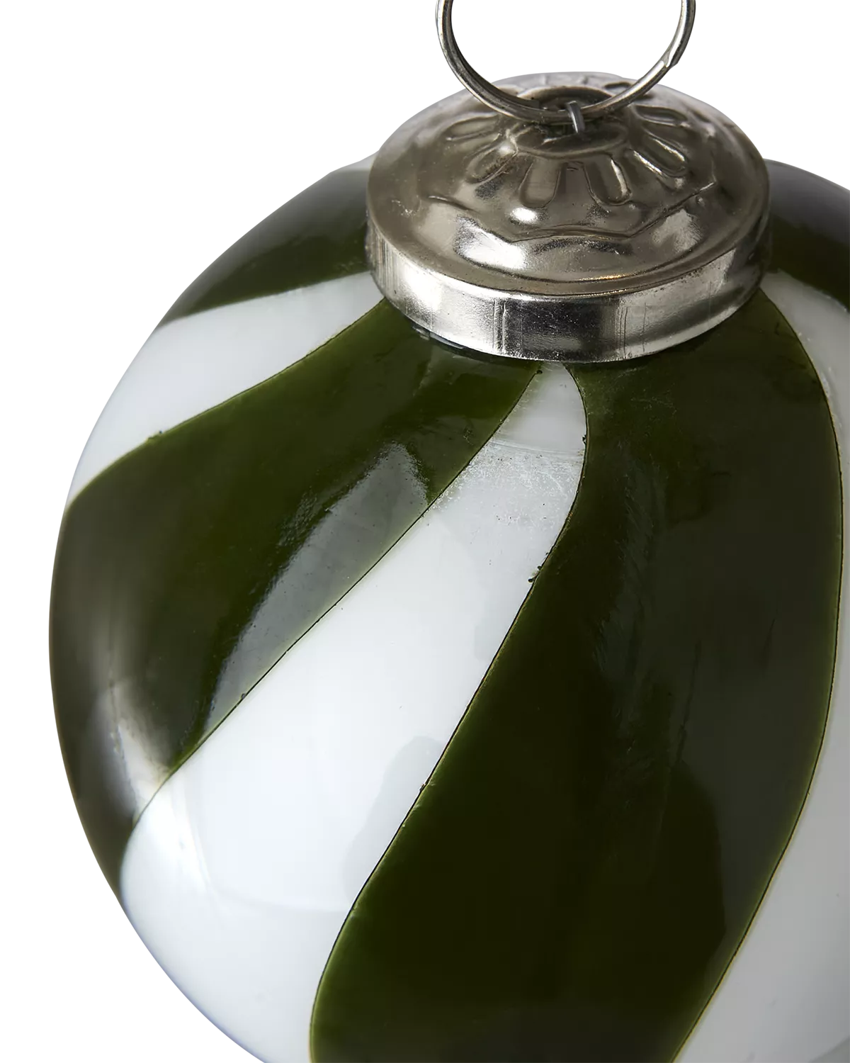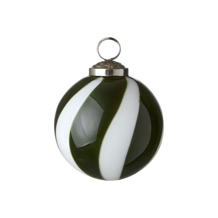 Circus julgransdekoration i grönt och vitt för in en mjuk och harmonisk känsla i julens dekorationer. Handgjord i glas med vackra ränder – en tidlös detalj som fångar ljuset och ger granen ett elegant uttryck.