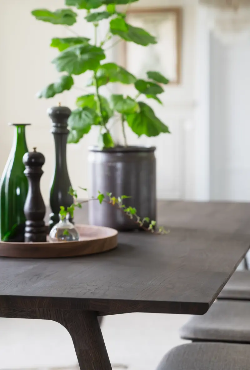 Matbordet har blivit behandlat med Rubio Monocoat som ger en tålig yta och står emot slitage väl. Detta innebär att bordet inte behöver ytterligare behandling innan användning. För att bevara bordets skönhet rekommenderar vi i stället regelbundet underhåll med RUBIO Surface Care för effektiv rengöring av fläckar (vid behov) samt RUBIO Refresh Eco för uppfräschning av träytan (vid behov, upp till 4 ggr per år). Mer information finns i skötselrådet.
