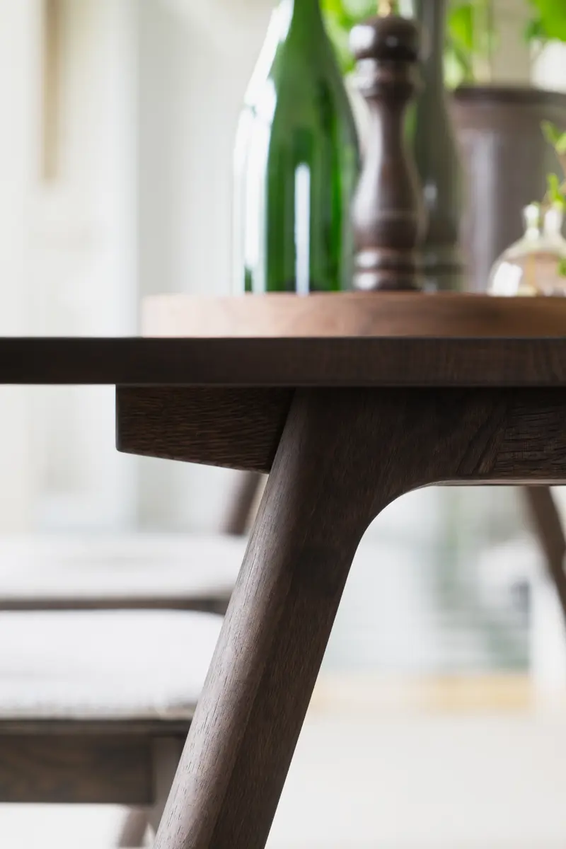 Clapperton är ett massivt träbord i brun ek med ett tydligt formspråk och högt designvärde. Tillverkat i Europa med omtanke om både miljö och estetik. Det FSC®-certifierade träet är fingerskarvat för att skapa en kraftfull känsla och ett levande uttryck, samt behandlat med Rubio-olja som lyfter fram träets naturliga struktur och unika färgton. Designen kombinerar raka och rundade linjer på ett harmoniskt sätt. De utställda benen möts i ett elegant snitt, där benparet bildar ett gemensamt stycke, en subtil men sofistikerad detalj som förhöjer bordets uttryck. Resultatet är ett dynamiskt och lätt formspråk, som gör Clapperton till ett blickfång i det moderna hemmet.