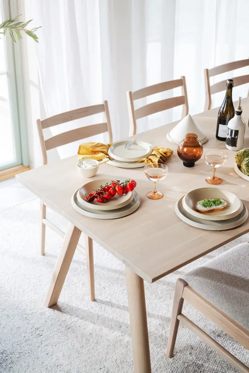 Clapperton är ett massivt träbord i vitpigmenterad ek med ett tydligt formspråk och högt designvärde. Tillverkat i Europa med omtanke om både miljö och estetik. Det FSC®-certifierade träet är fingerskarvat för en kraftfull känsla och ett levande uttryck, samt behandlat med Rubio-olja som lyfter fram träets naturliga struktur och unika färgton. Designen kombinerar raka och rundade linjer på ett harmoniskt sätt. De utställda benen möts i ett elegant snitt, där benparet bildar ett gemensamt stycke, en subtil men sofistikerad detalj som förhöjer bordets uttryck. Resultatet är ett dynamiskt och lätt formspråk, som gör Clapperton till ett blickfång i det moderna hemmet.