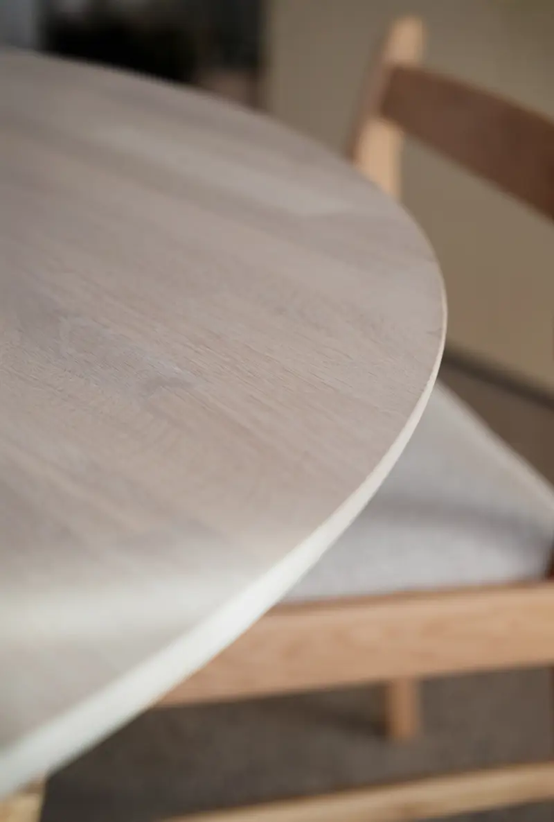 Bordet, som i sin grund är 140 cm, är dessutom praktiskt och flexibelt. Med en eller två iläggsskivor som köps separat kan det förlängas till ett ovalt bord på upp till 240 cm, vilket gör det enkelt att anpassa för både vardagliga middagar och större sociala sammanhang. Clapperton förenar funktion, hållbarhet och estetik i en genomtänkt helhet.