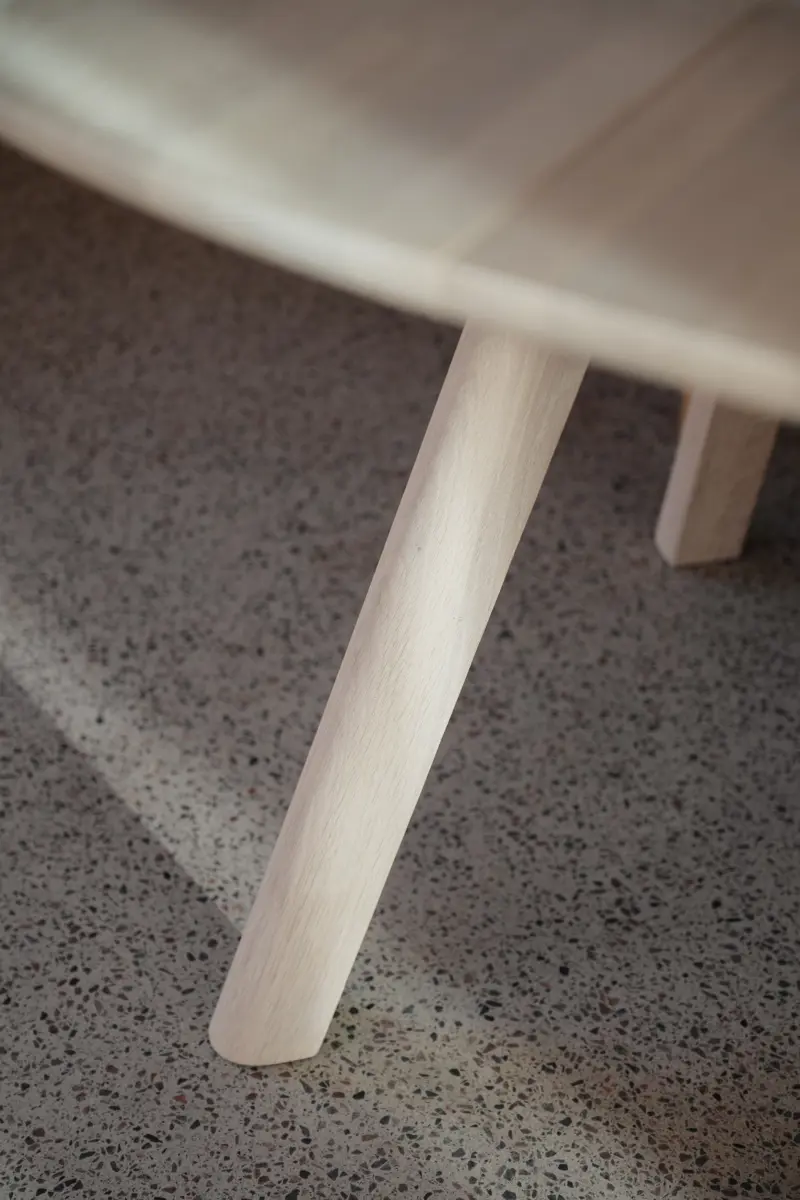 Designen balanserar harmoniskt mellan raka och mjukt rundade linjer, vilket ger bordet en modern men ändå tidlös känsla. De utställda benen möts i ett elegant snitt där benparet förenas till ett gemensamt stycke – en subtil, men sofistikerad designlösning som förstärker bordets uttryck.