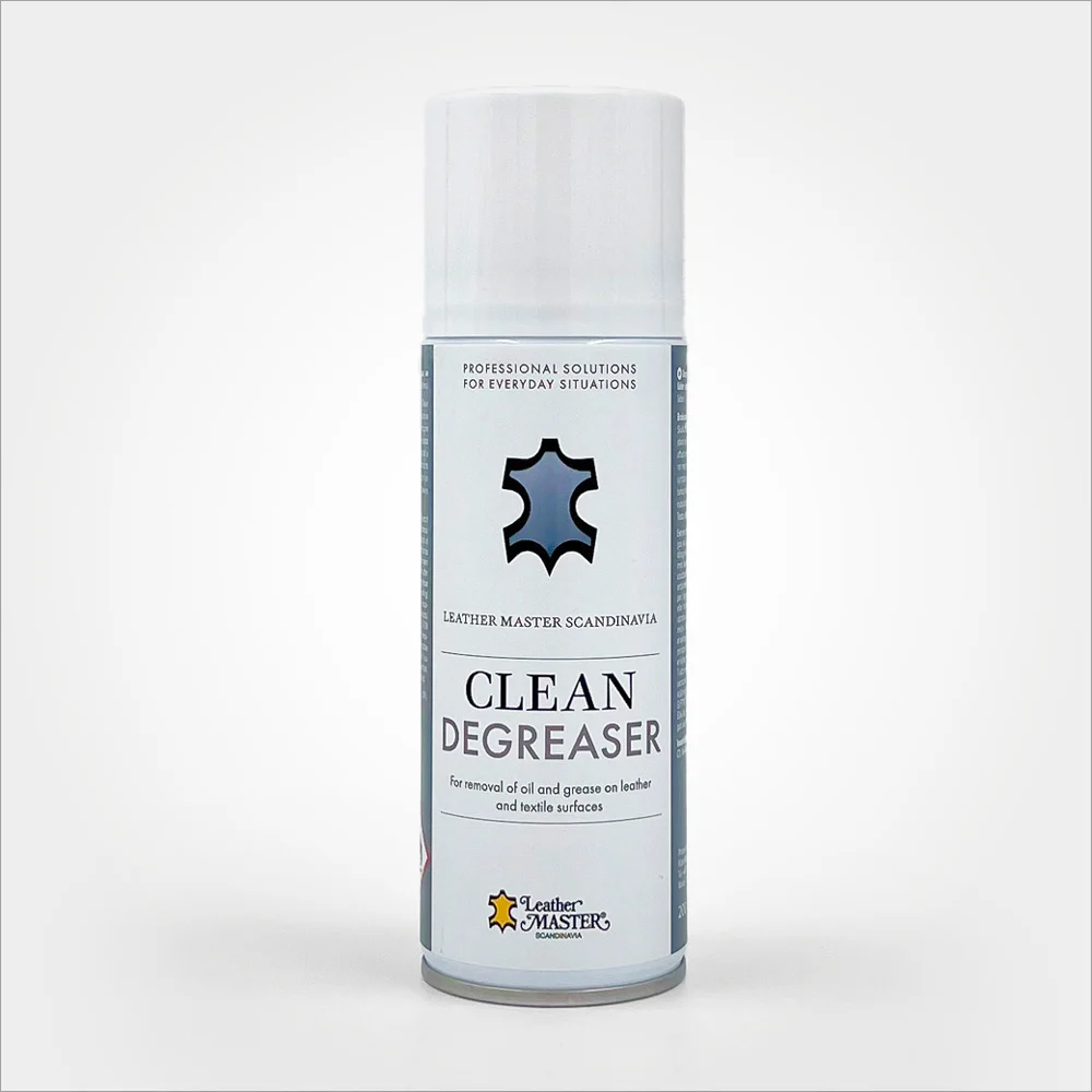 Clean Degreaser är en kraftfull fläckborttagare som avlägsnar olje- och fettfläckar från både läder och textil. Den är särskilt framtagen för att ge ett djupgående resultat på känsliga material och är idealisk för punktbehandling av envisa fläckar. Clean Degreaser är inte lämplig för tekniska eller täckfärgade läder, vilket gör den bäst anpassad för obehandlade och naturliga läderytor samt textilier.
