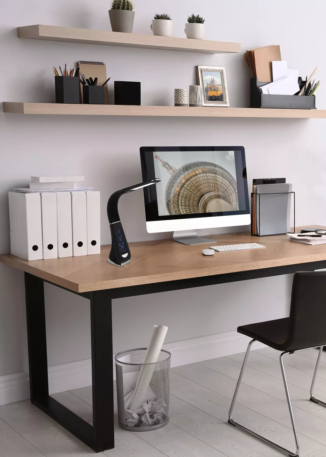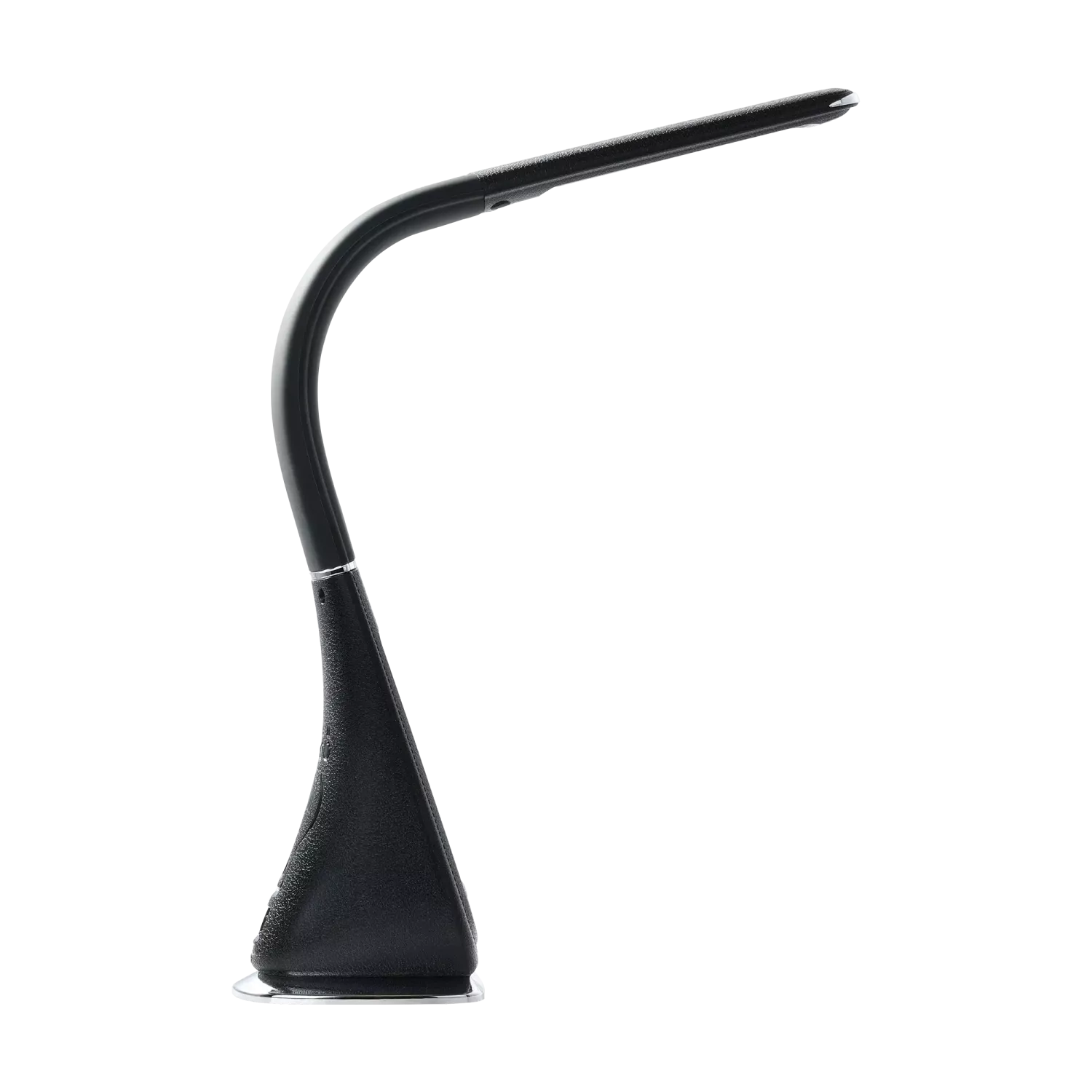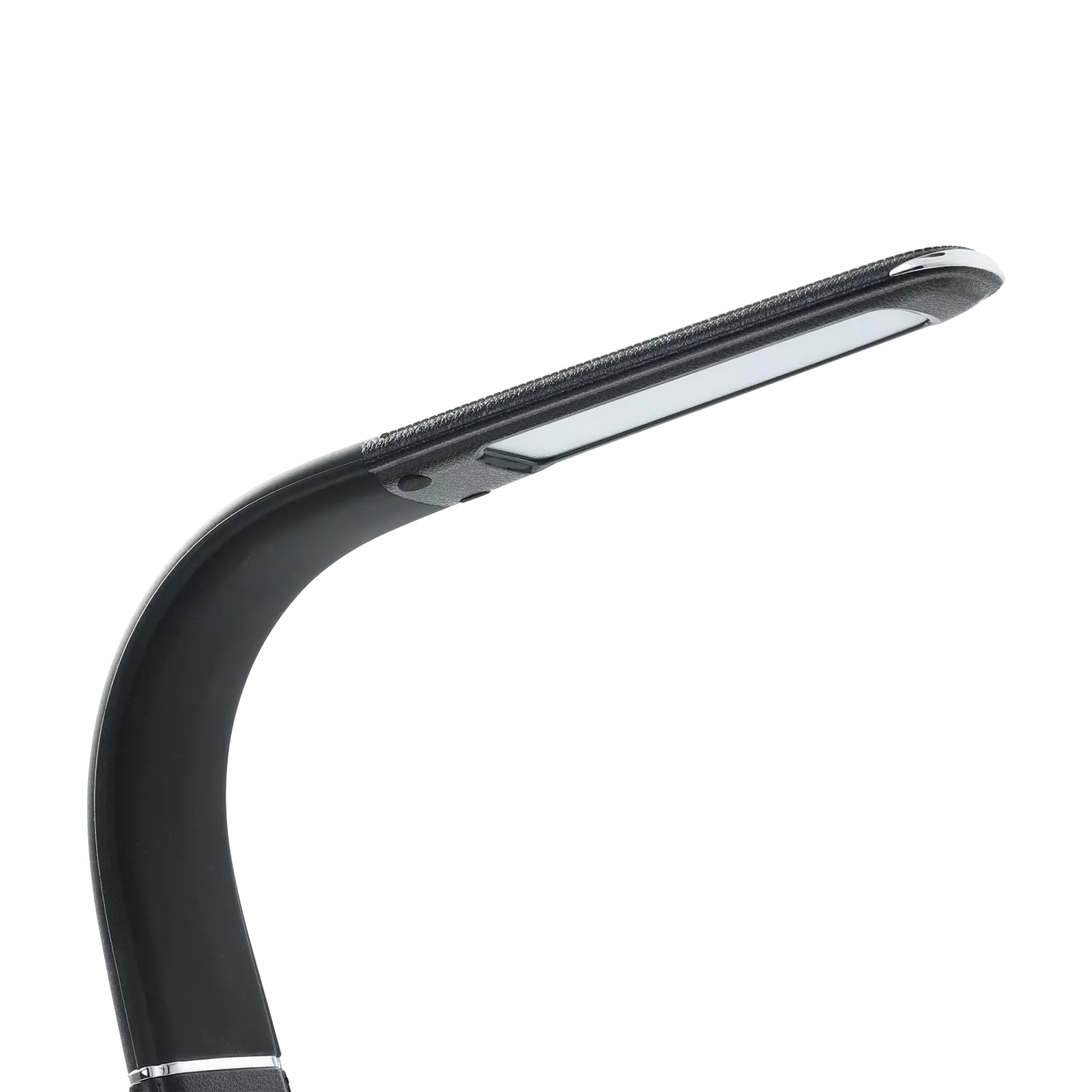 Cognoli LED-skrivbordslampa är tillverkad av svart plast med kromfärgade detaljer. De integrerade lysdioderna producerar ett neutralt vitt ljus som är perfekt vid arbete. Tack vare den flexibla halsen kan produkten omedelbart ge fokuserad belysning för din arbetsplats. Skrivbordslampan har en trestegs touchdimmer. Förutom att visa tid, temperatur och datum har lampan en larmfunktion med olika ljud. Med sitt moderna utseende och attraktiva plastdetaljer som påminner om lädersömmar är denna lampa garanterat ett praktiskt men ändå dekorativt måste för din arbetsplats, oavsett om det är på skrivbordet på ditt kontor eller ditt hemmakontor. Bordslampan är flexibla och ger det ljus du behöver på din arbetsplats. Den inbyggda displayen visar dessutom datum, tid och temperatur.