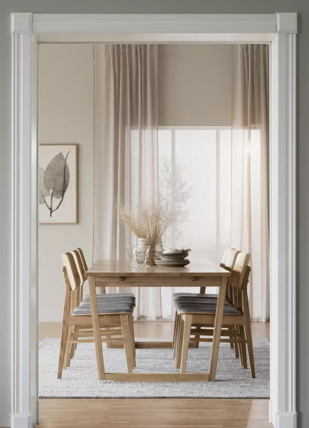 Bordet är lackat och lättskött och passar bra in i våra nordiska hem.