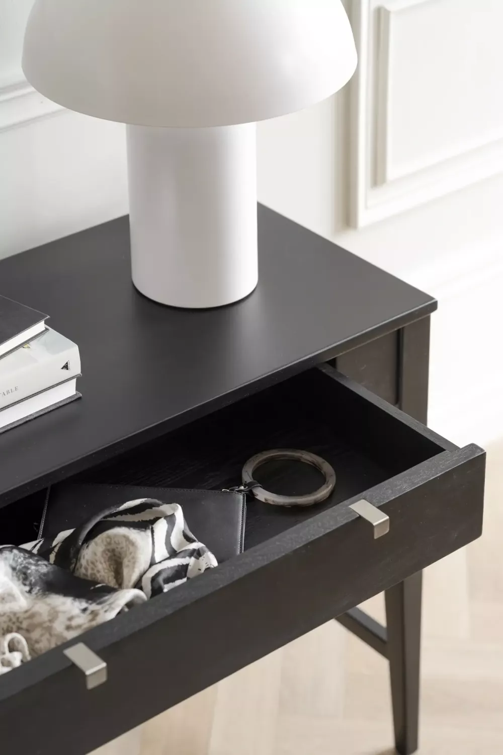 Material: Massiv och fanerad svartlackad ek. Detaljer i metall