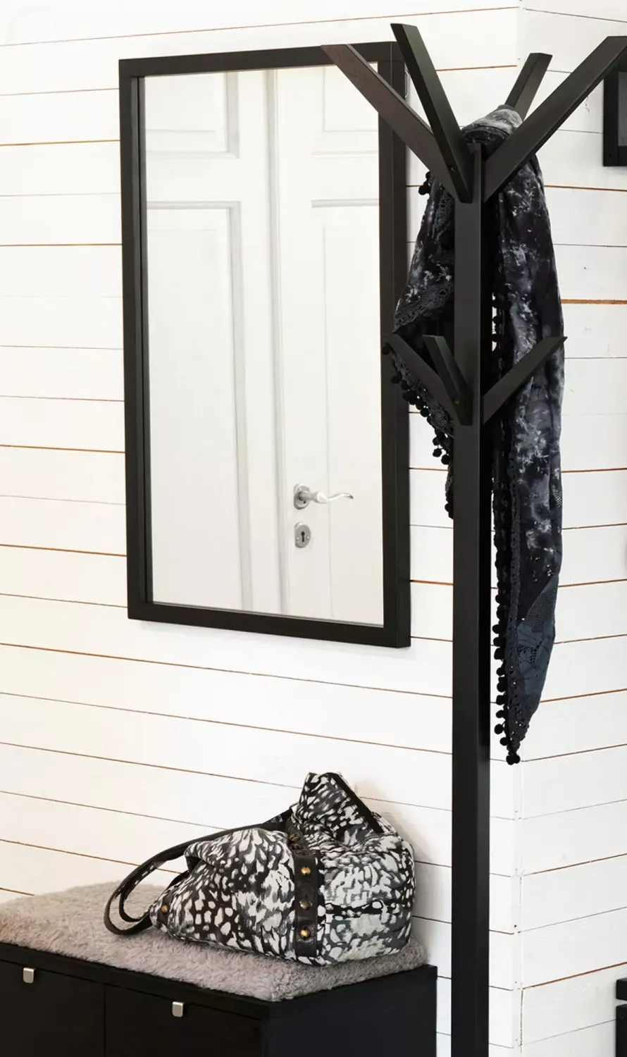 Confetti spegel med ram i svartlackad ek. Stilren och enkel att placera. Går att hänga både vertikalt och horisontellt.
