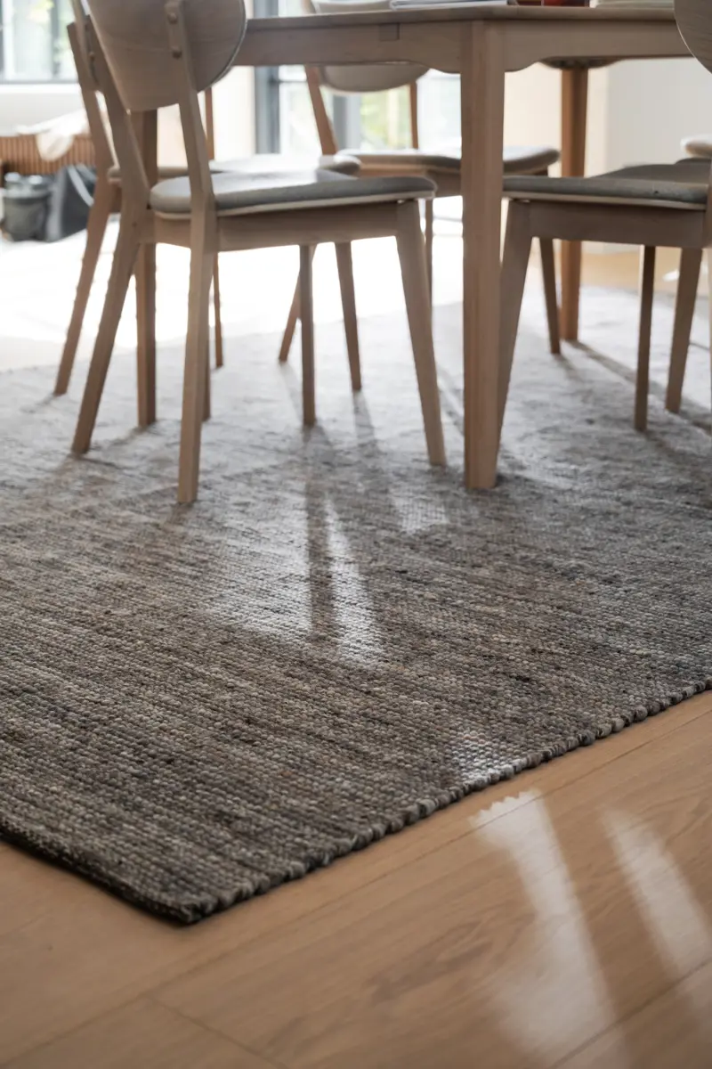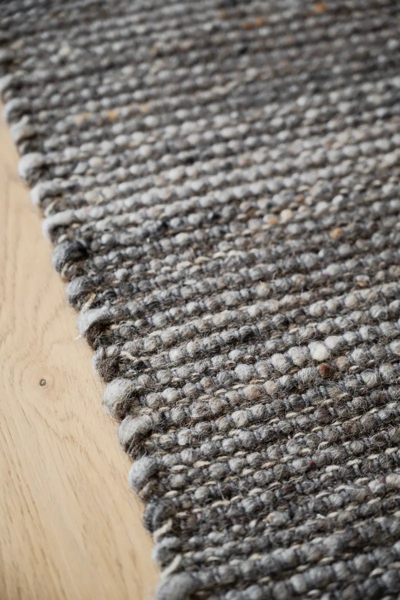 Donegal matta 200x290 cm i mörkgrå ull är en lite tunnare handvävd matta. Mattan består av 100% ull och är varm och skön att gå på. Donegal finns i flera storlekar och är tack vare sina naturfärger lätt att placera i hemmets olika rum. Mattunderlägg rekommenderas. Finns i flera färger.