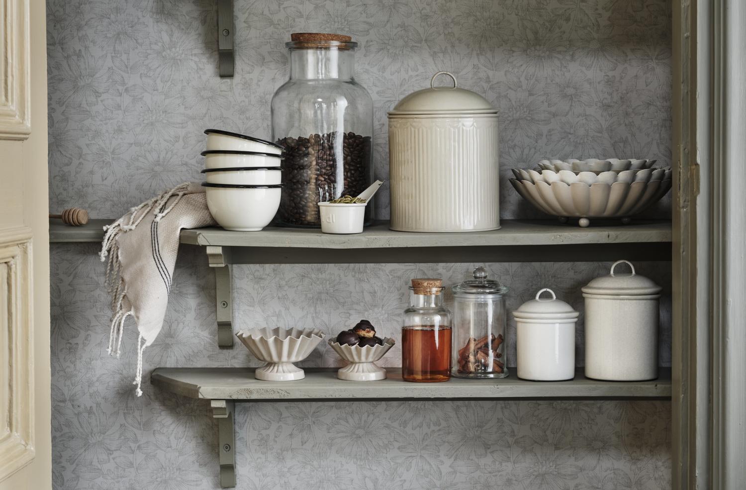Dekorativ skål med veckad kant på fot i beige plåt. Skålen passar perfekt till snacks, godis eller nötter. Matchas gärna med de andra storlekarna i samma färg för en fin helhet.