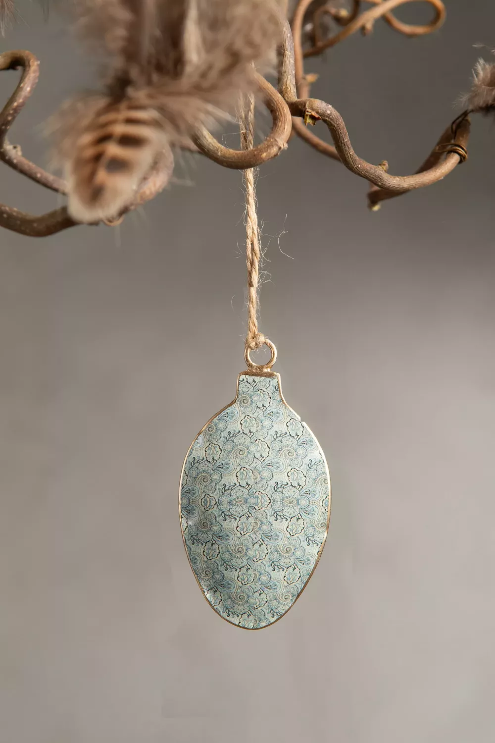 Vackert dekorationshänge i formen av ett ägg i en fin blåmönstrad färg. Hänget har en jutetråd upptill som gör det enkelt att hänga upp. Passar perfekt till påskriset eller varför inte hänga dem i fönstret.