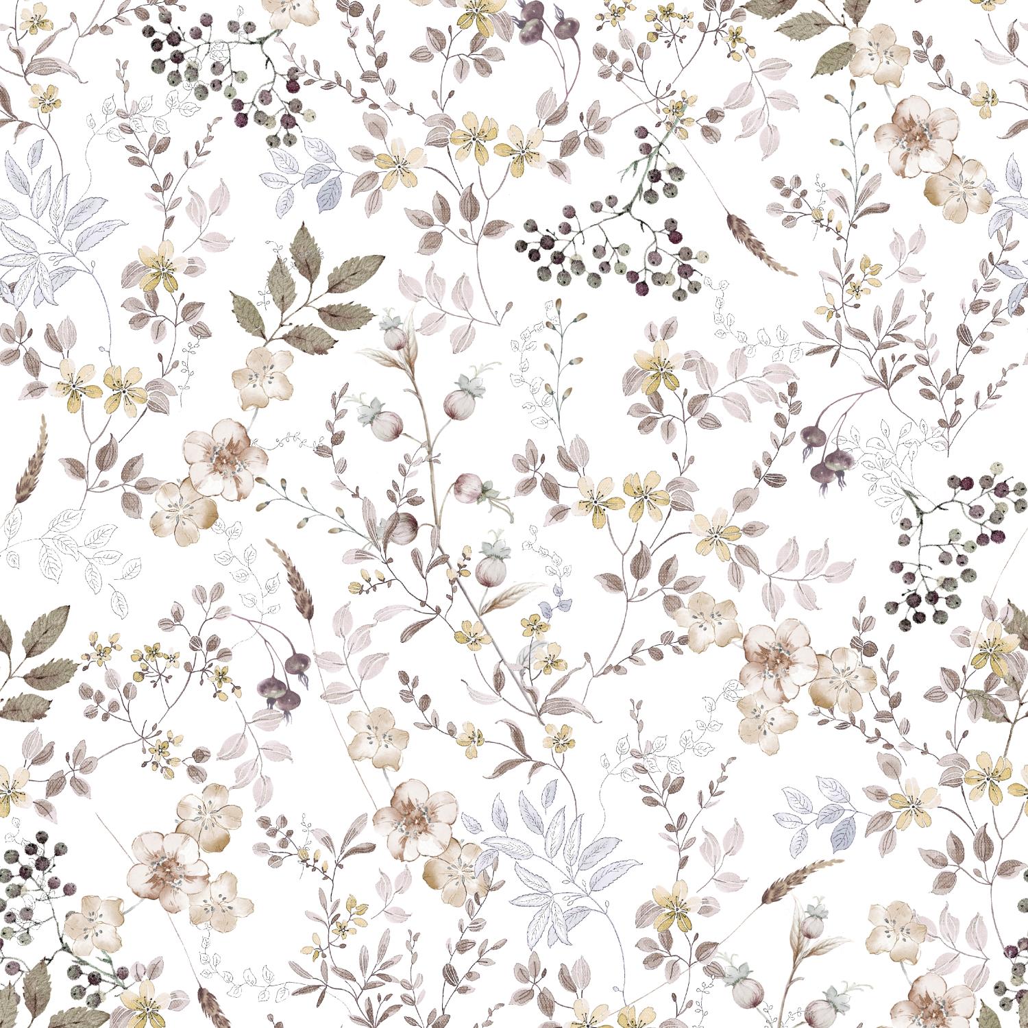 Vacker tryckt mönstrad metervara med vit bottenfärg med vackra blommor i höstiga färger så som brun, gul, plommon och blått. Detta tyget ger ditt hem en ordentlig omfamnande känsla och passar i de flesta rum. Detta tyget funkar till både gardinlängder och gardinkappor.