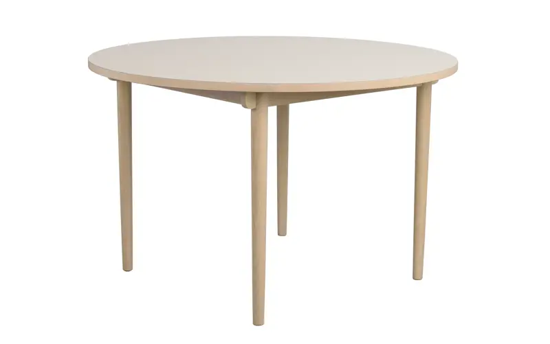 Fairmount är ett elegant matbord i vitpigmenterad ek med en nätt och luftig design. Bordsskivan är i slitstarkt högtryckslaminat, vilket gör den reptålig och motståndskraftig mot väta – perfekt för både livet i vardagen och festliga tillställningar. Den beige kulören på bordsskivan tillsammans med träkantlist i faner och de massiva ekbenen gör att matbordet passar in i de flesta hem.