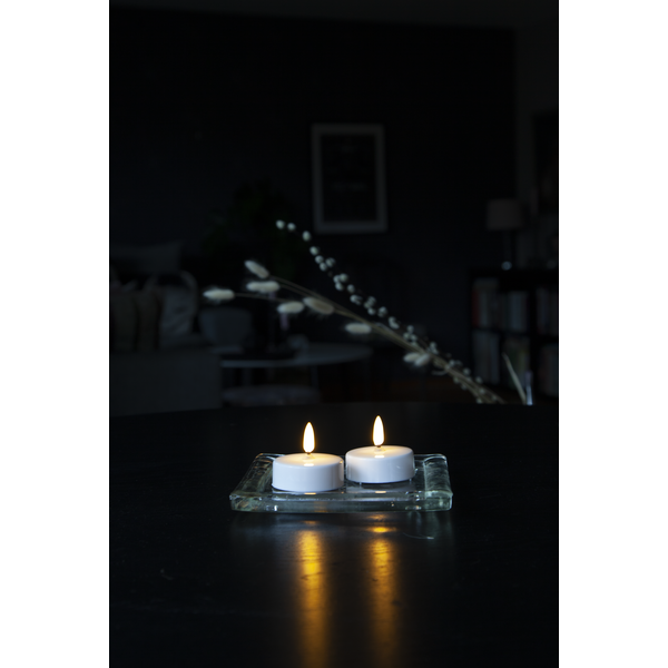 2p värmeljus i diameter 58mm med varmvitt sken i serie Flamme. Med inbyggd timer. 6 timmar på.