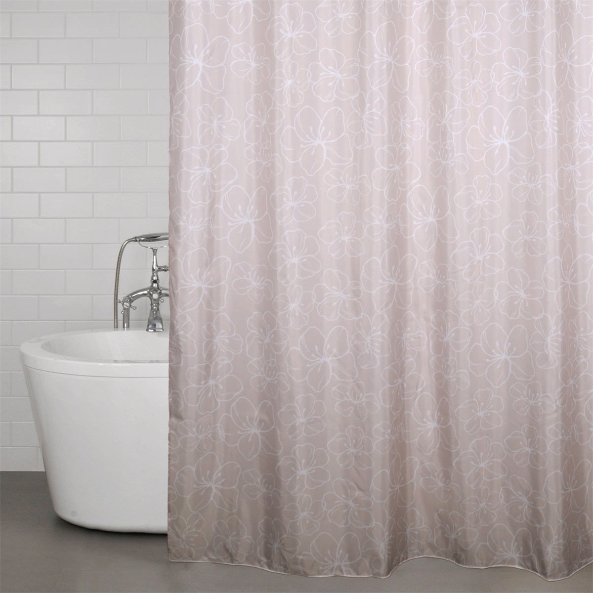 Blommigt duschdraperi, inkl 12 st vita ringar för enkel upphängning.