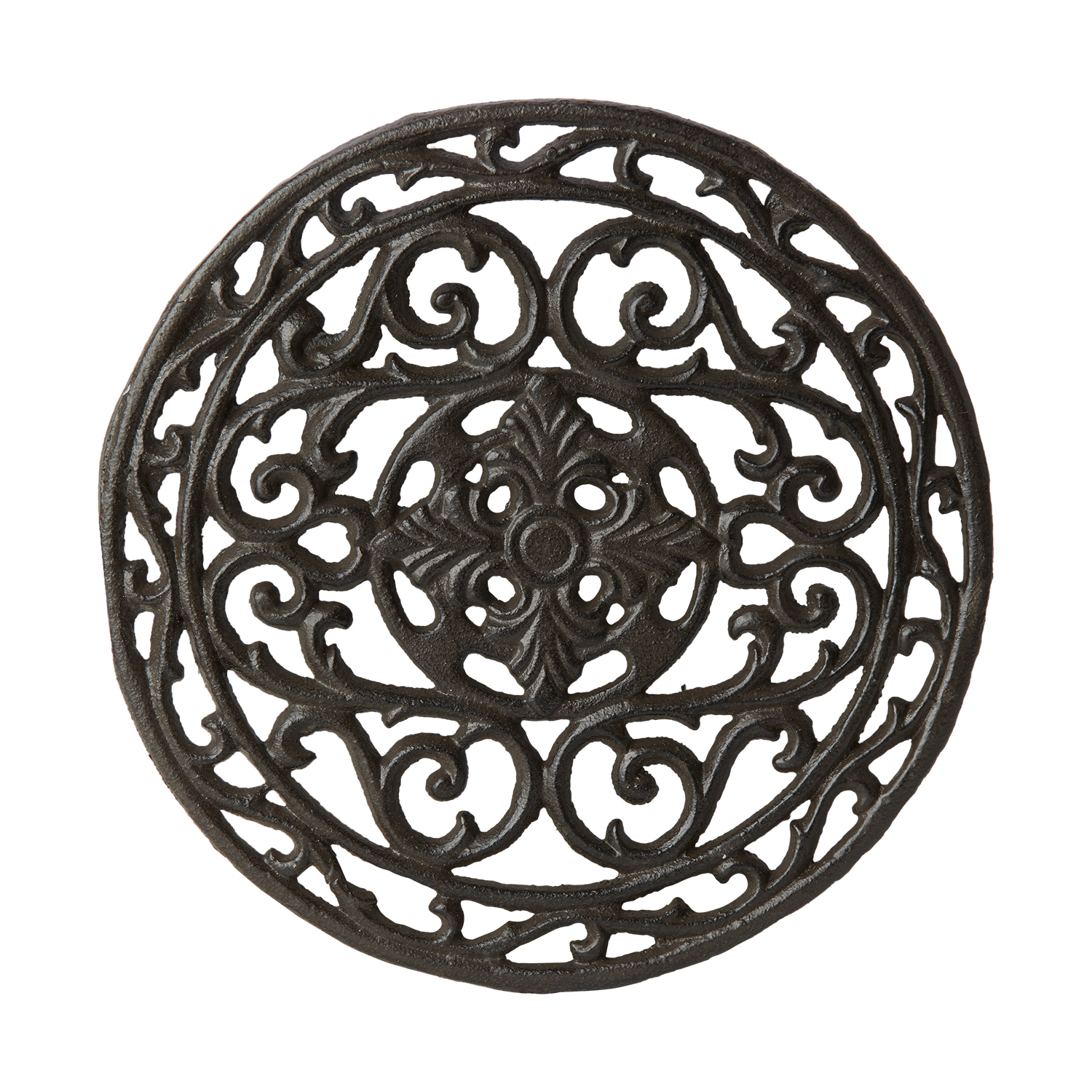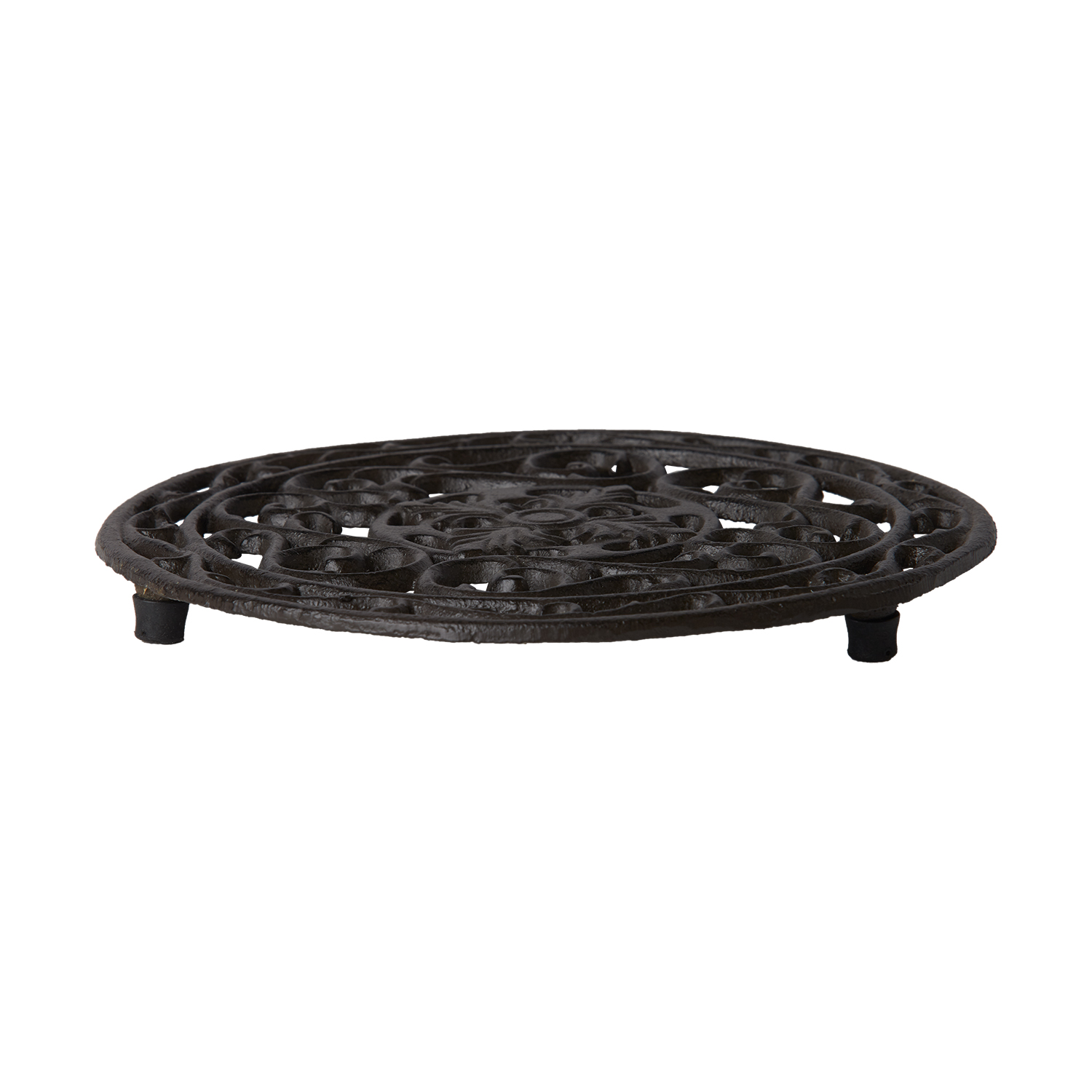 Vackert runt grytunderlägg i rustikt gjutjärn. Perfekt att låta stå framme på bordet då den är otroligt vacker.