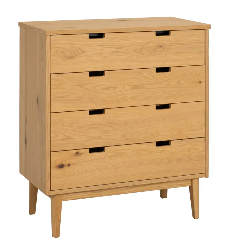De mjukstängande lådorna är ett tydligt bevis på omsorgsfullt hantverk och genomtänkta detaljer. De glider tyst och följsamt, vilket inte bara bidrar till en exklusiv känsla i användningen utan även skyddar möbeln över tid. Den naturliga träkänslan förstärker byråns varma uttryck och gör den enkel att kombinera med både moderna och mer traditionella interiörer.