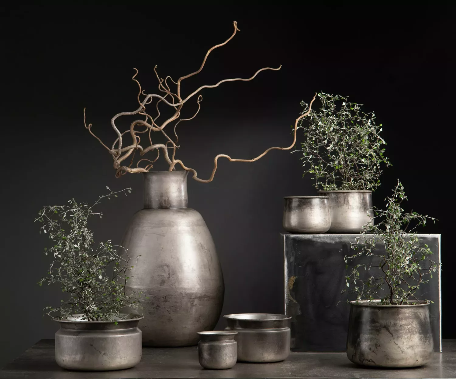 Denna eleganta vas i metall har en molnig finish som ger ditt hem en industriell känsla.