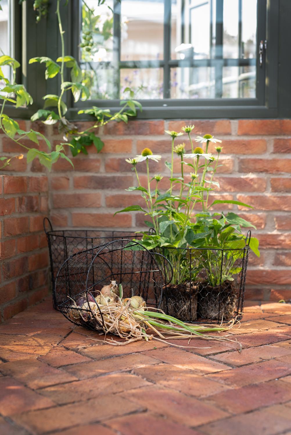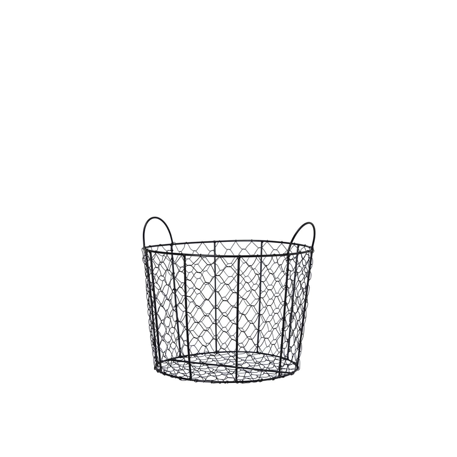 Stilren nätkorg med handtag i svartmålat järn. En perfekt korg att kunna använda till mycket. Använd den inomhus till plädar, tidningar, toapapper. Eller utomhus till ved, rovor eller blommor. Endast fantasin sätter gränsen för denna fina korg. Köp gärna till de storlekarna för en fin helhet.