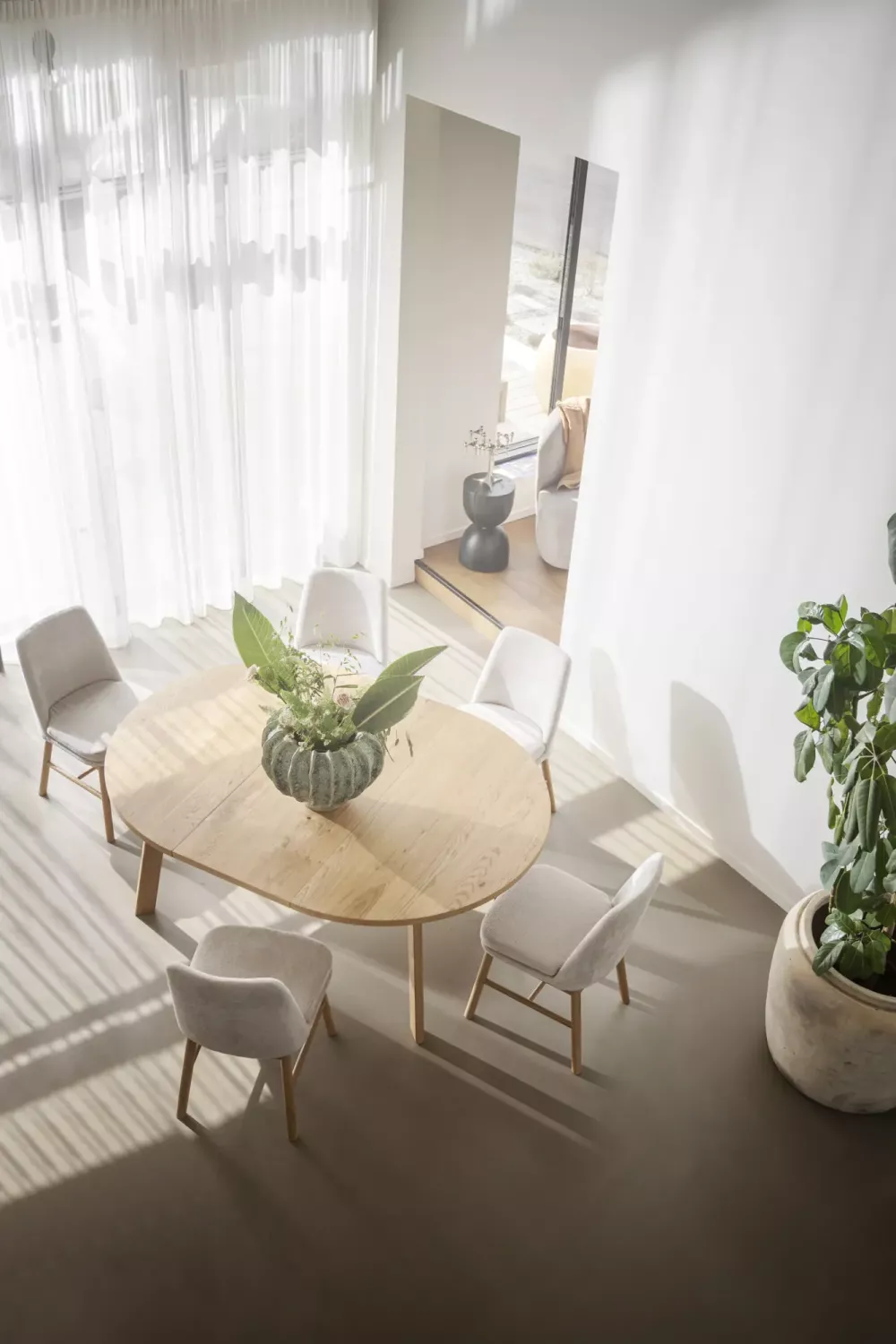 Glenside matbord i FSC®-certifierad oljad ek har en avskalad skandinavisk design där den runda bordsskivan möter de massiva raka träbenen i harmoni och enkelhet.
