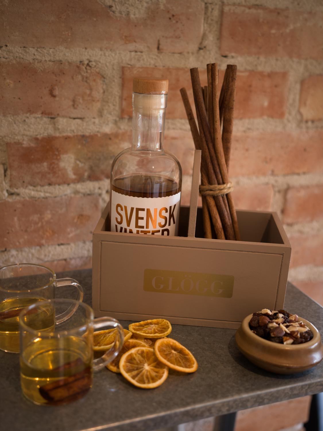 Snygg trälåda i en varm nougatbrun färg med texten "Glögg" i guld. Det finns två stycken fack där det ryms glöggflaskor. En perfekt present att ta med till middagsbjudningen runt jul.