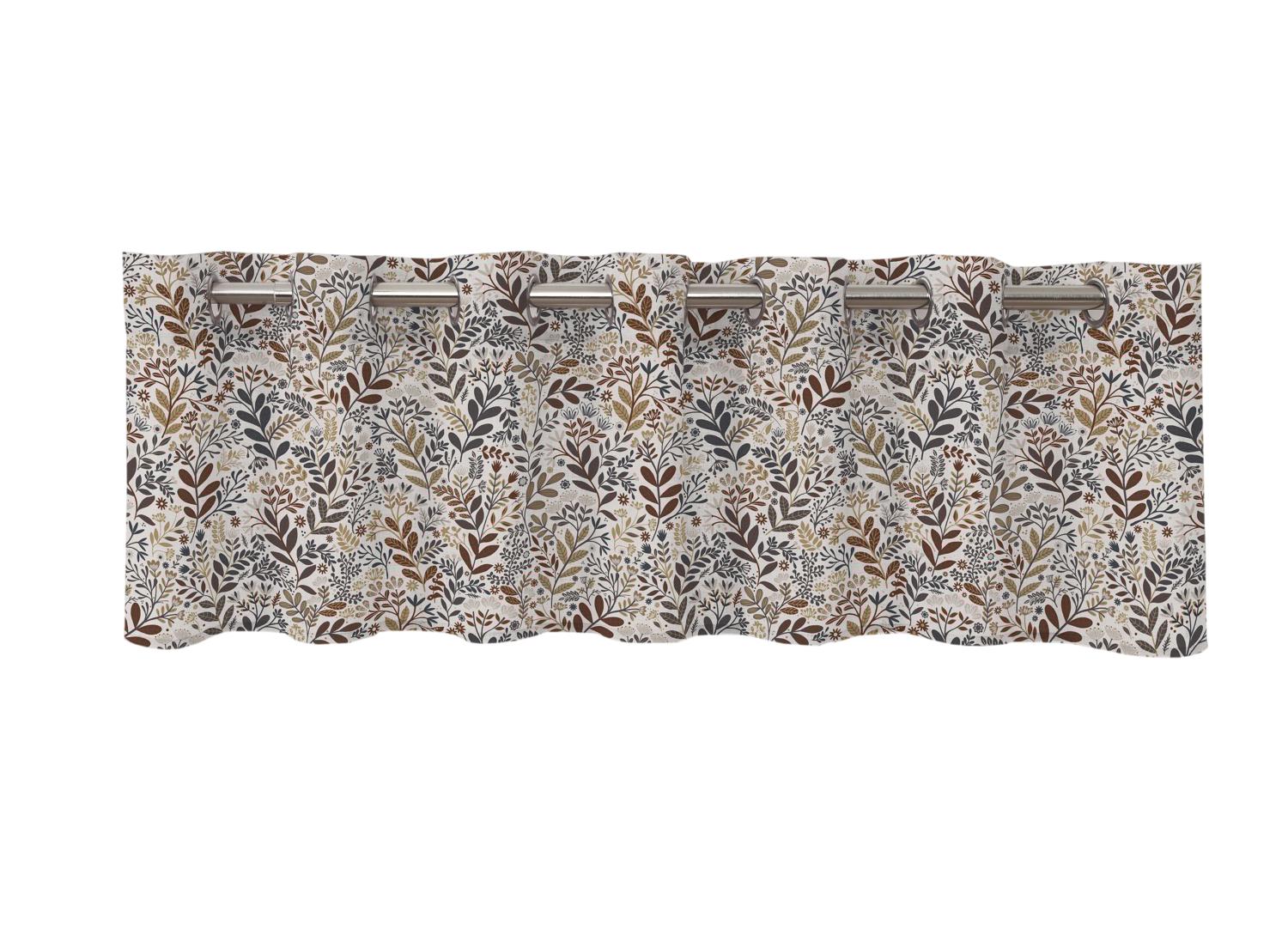 Öljettkappa med småmönstrat motiv i denimblått och rostorange. Mönstret är skapat av svensk designer.
