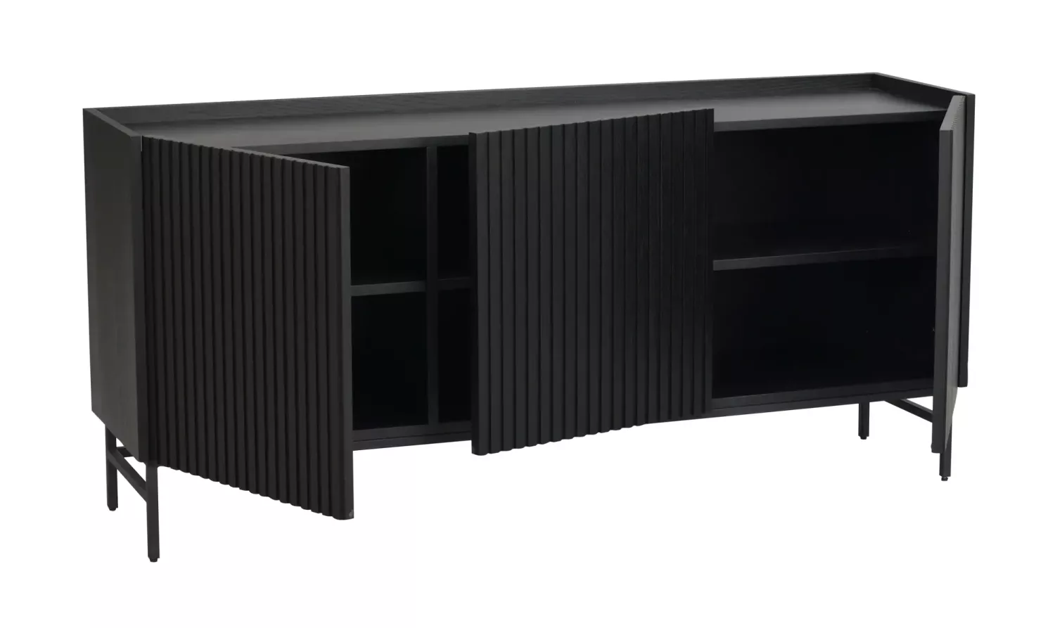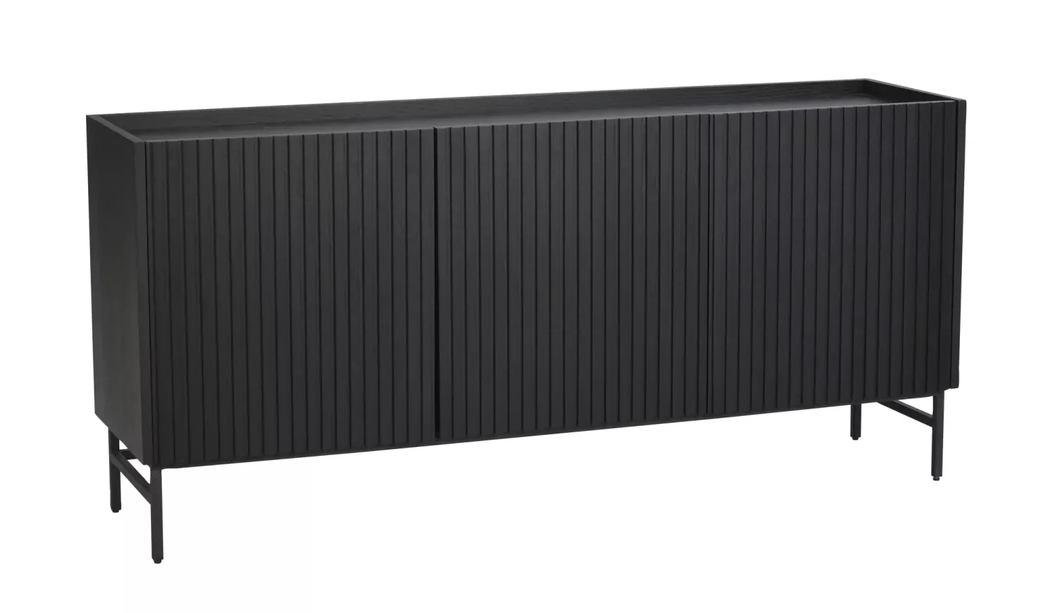 Trendiga Halifax sideboard i svartlackad ek med svarta metallben i rak elegant profil.