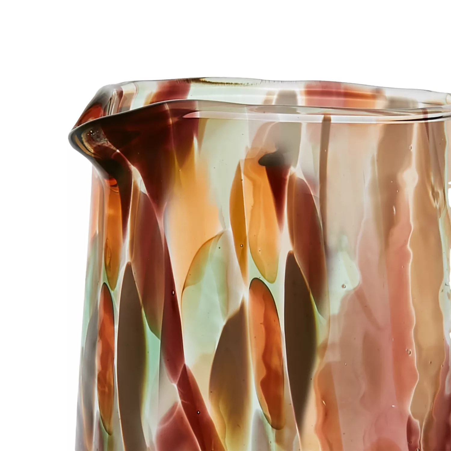 Flerfärgad kanna i en varm färgskala med olika variationer i färg och struktur vilket gör varje kanna unikt.