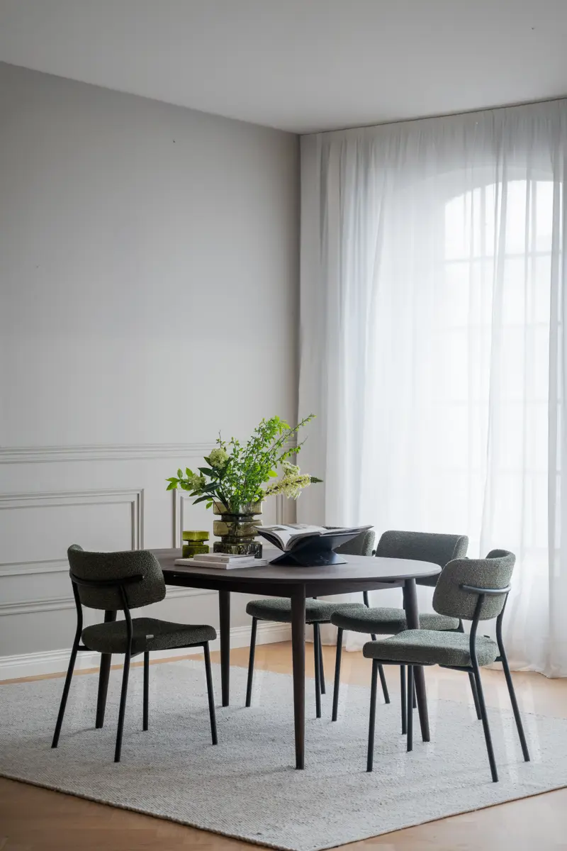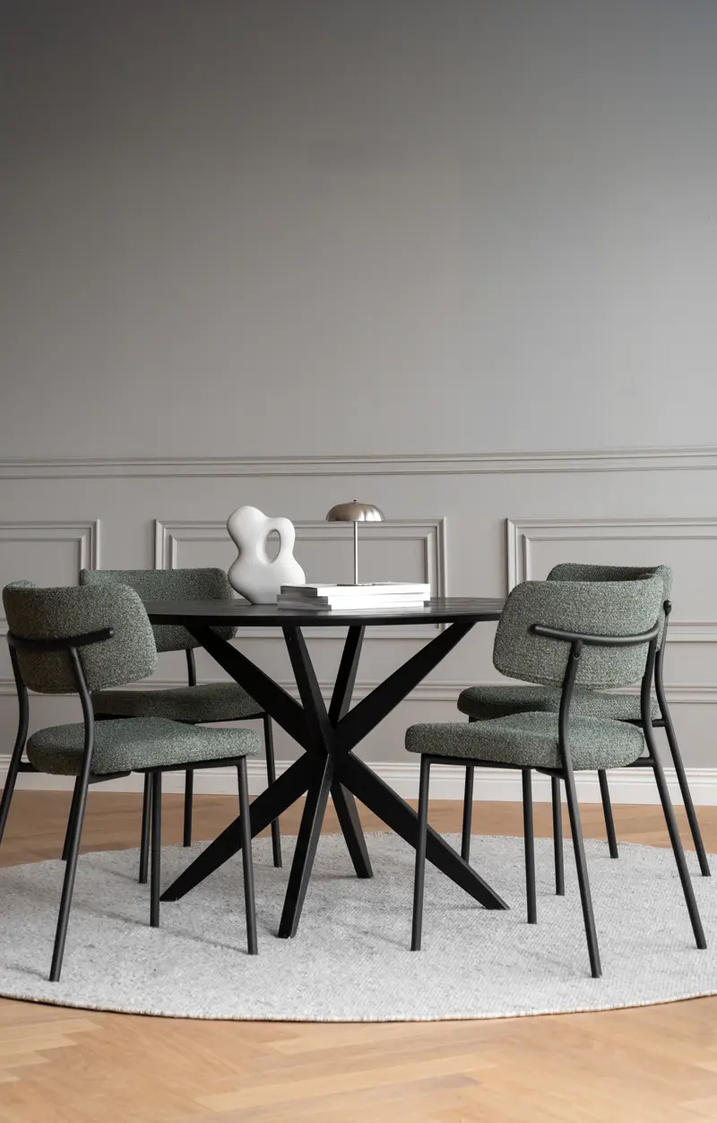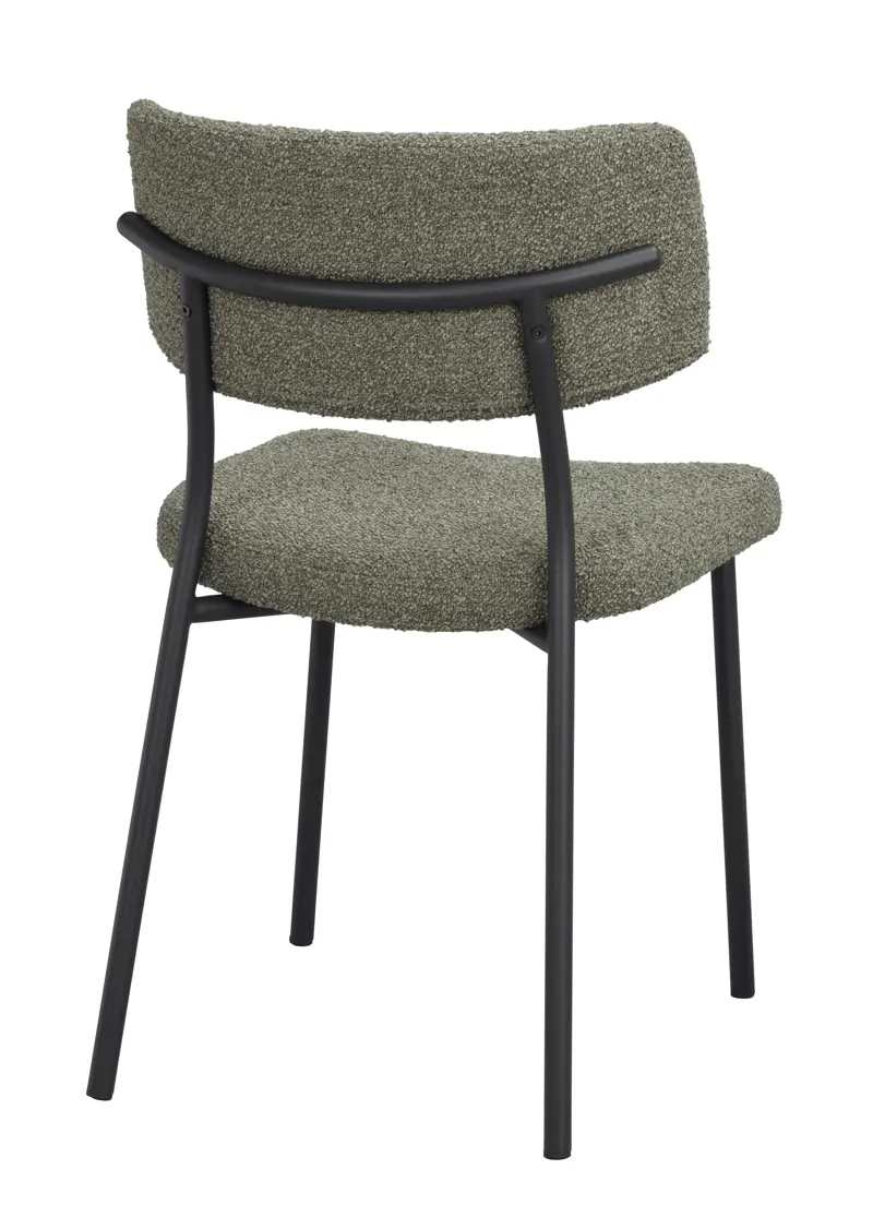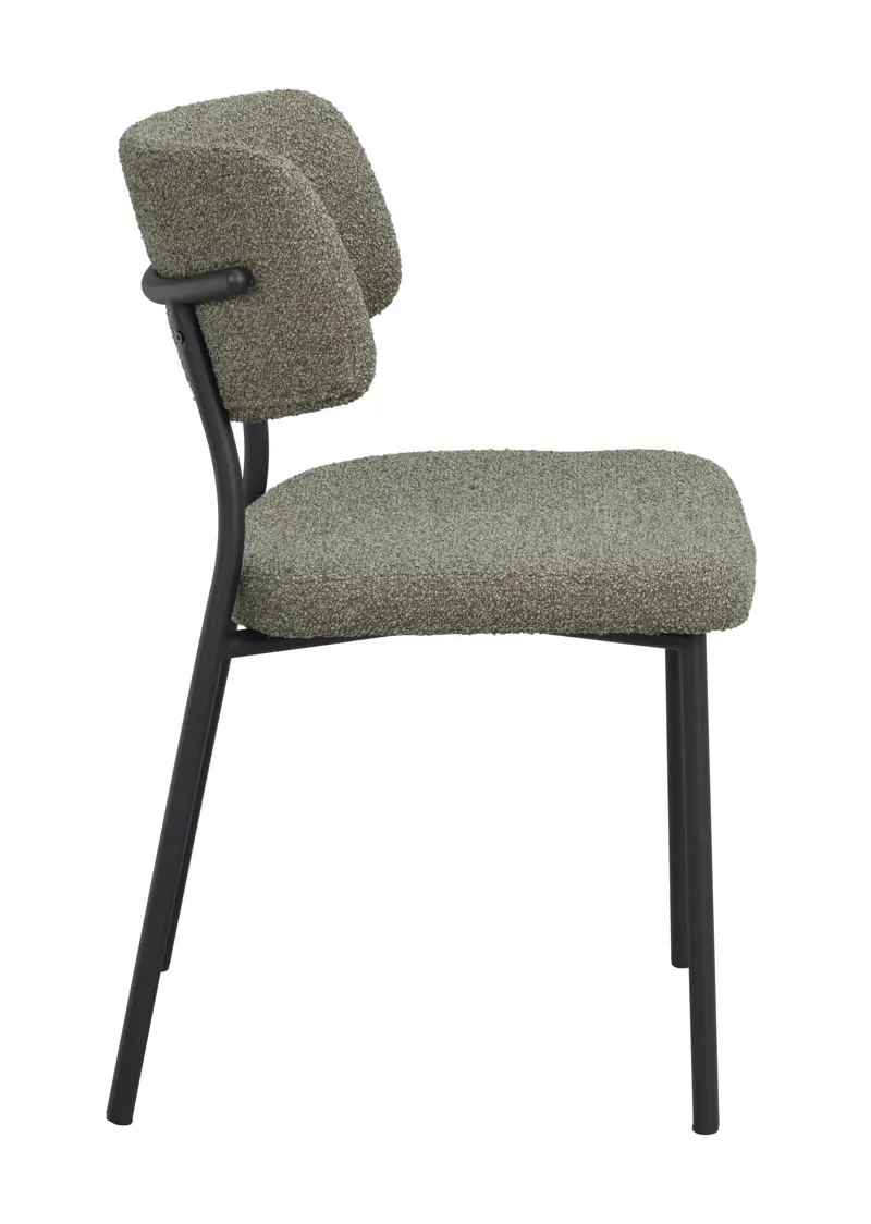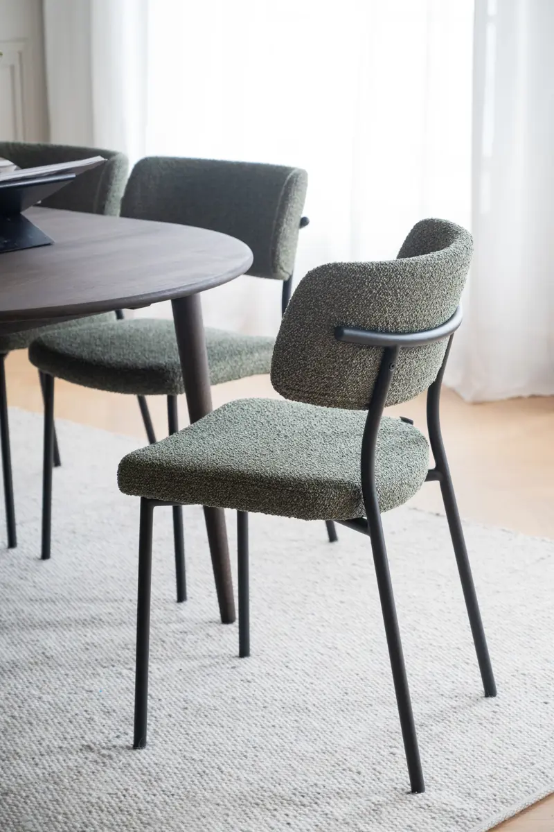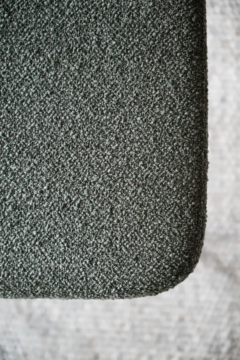 Herbster är en modern och prisvärd stol med hög komfort och stilren design. Den är klädd i ett slitstarkt grönt tyg med en grov, boucléliknande struktur som ger både karaktär och en mjukt taktil känsla. Färgen är trendig, perfekt för dig som vill skapa ett uppdaterat uttryck i hemmet. Med sin sköna sits, moderna form och tåliga material passar Herbster lika bra vid matbordet som extra sittplats i vardagsrummet.