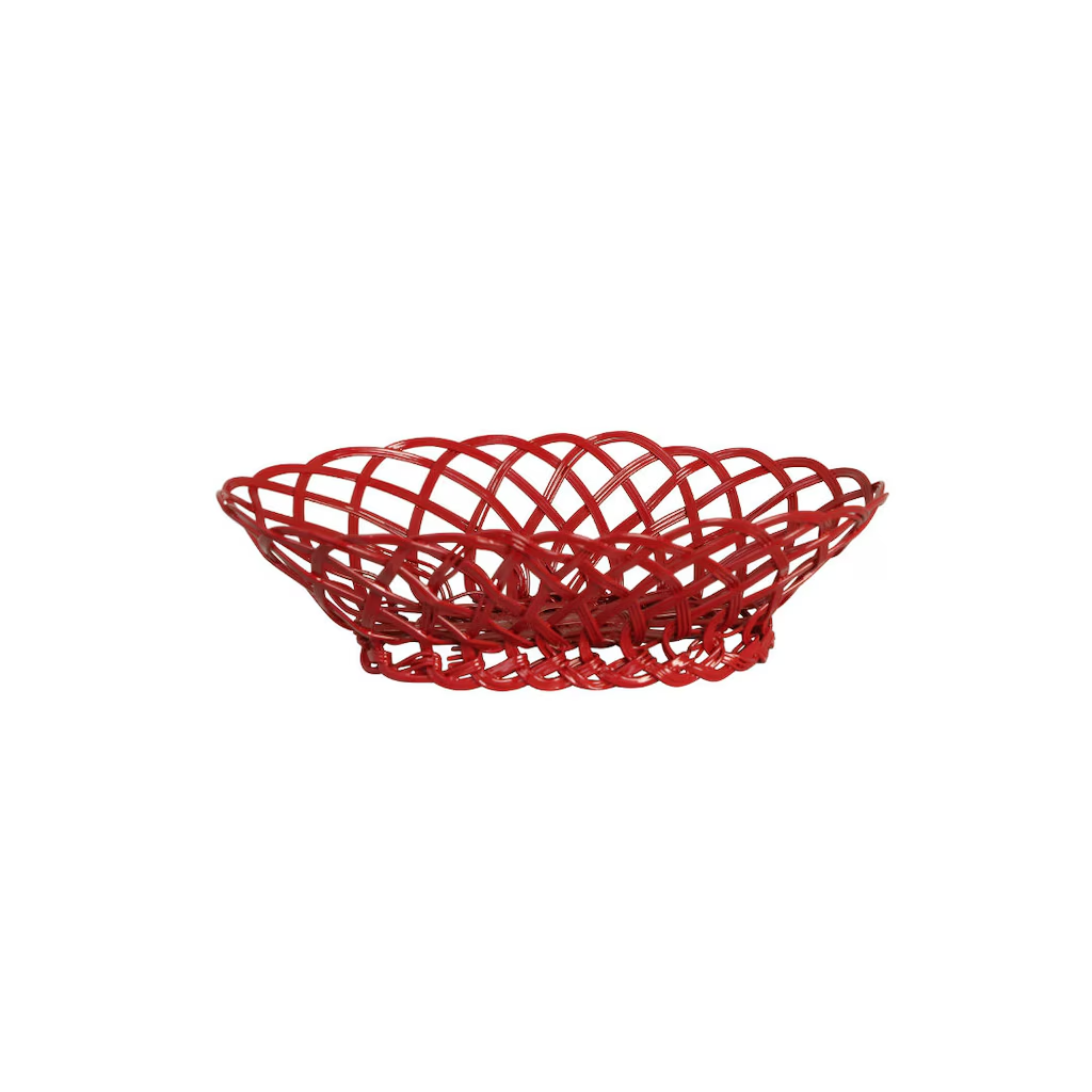 Fin oval trådkorg på fot i en varm röd färg. Perfekt förvaring i köket eller att ställa fram på julbordet.
