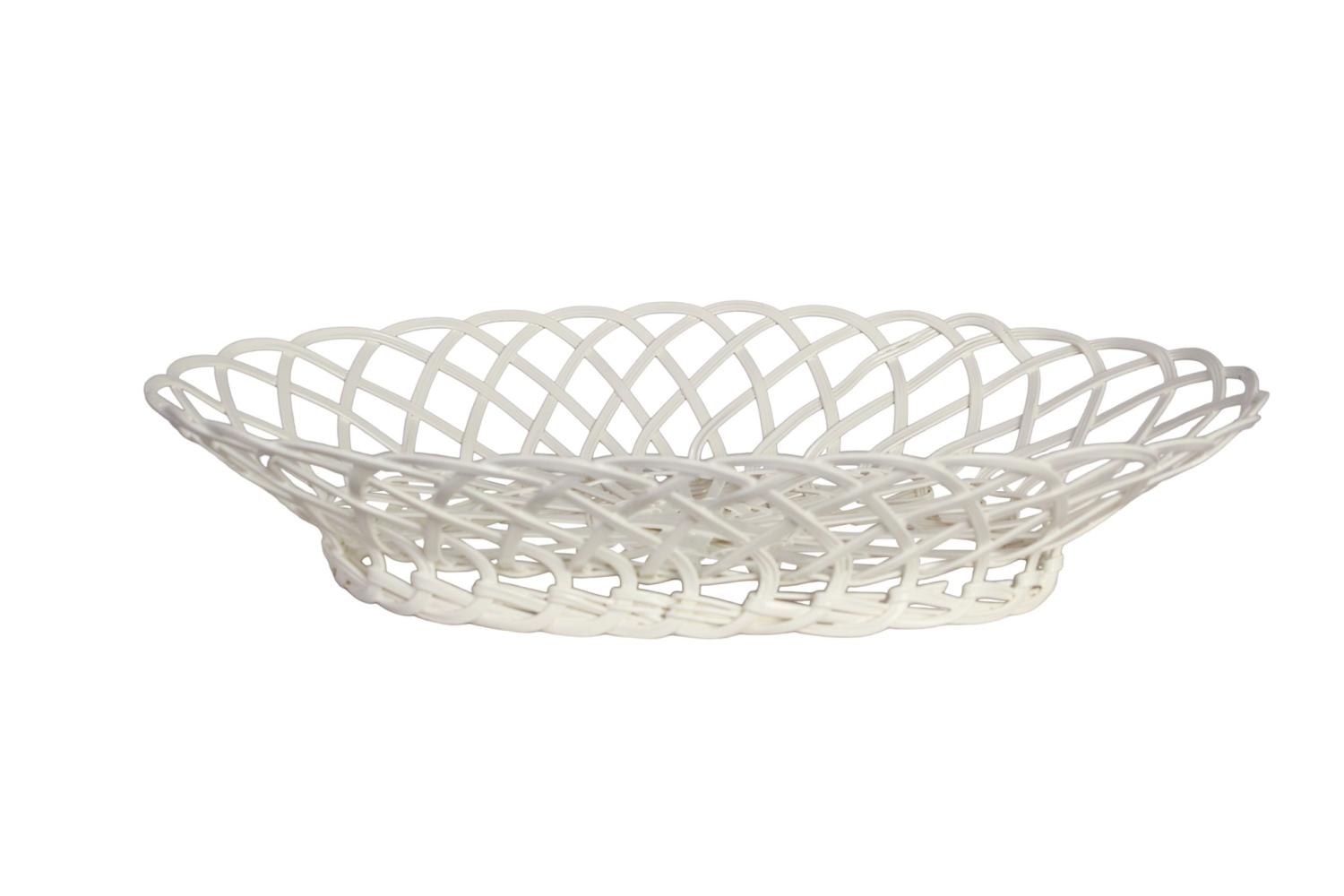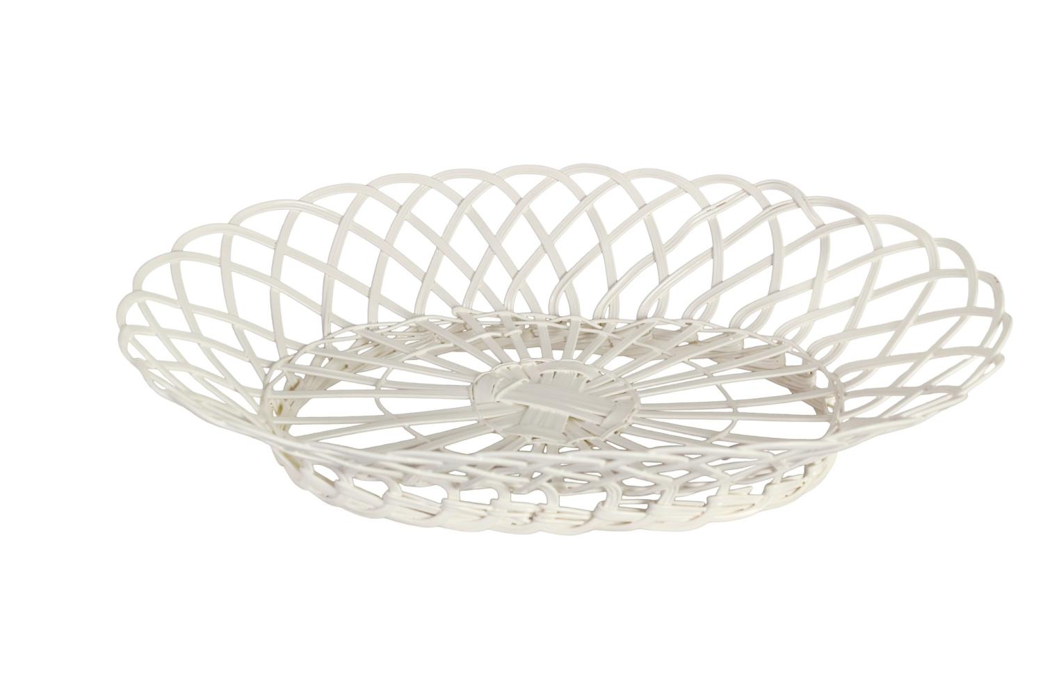 Vacker oval trådkorg på fot i en mjukt krämvit nyans. Passar utmärkt för att servera kakor och bullar, eller som en charmig inredningsdetalj på bordet.