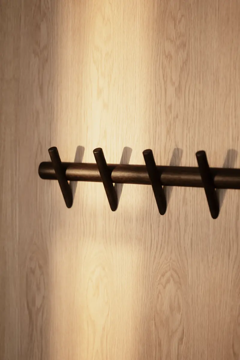 Hillmond kroklist i massiv brunlackad ek med sju krokar är en vacker och stilren klädhängare som hjälper dig att hålla ordning i hallen, sovrummet eller klädkammaren. De runda formerna som möter de raka linjerna utstrålar enkelhet och minimalism som är både vacker och funktionell. Kollektionen Hillmond är synonymt med hög kvalitet, vackra trädetaljer och harmonisk skandinavisk design. Kombinera gärna med andra produkter från samma kollektion för en enhetlig stil.