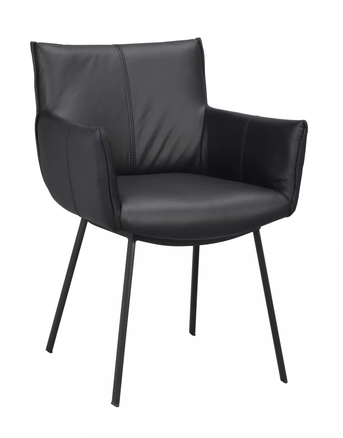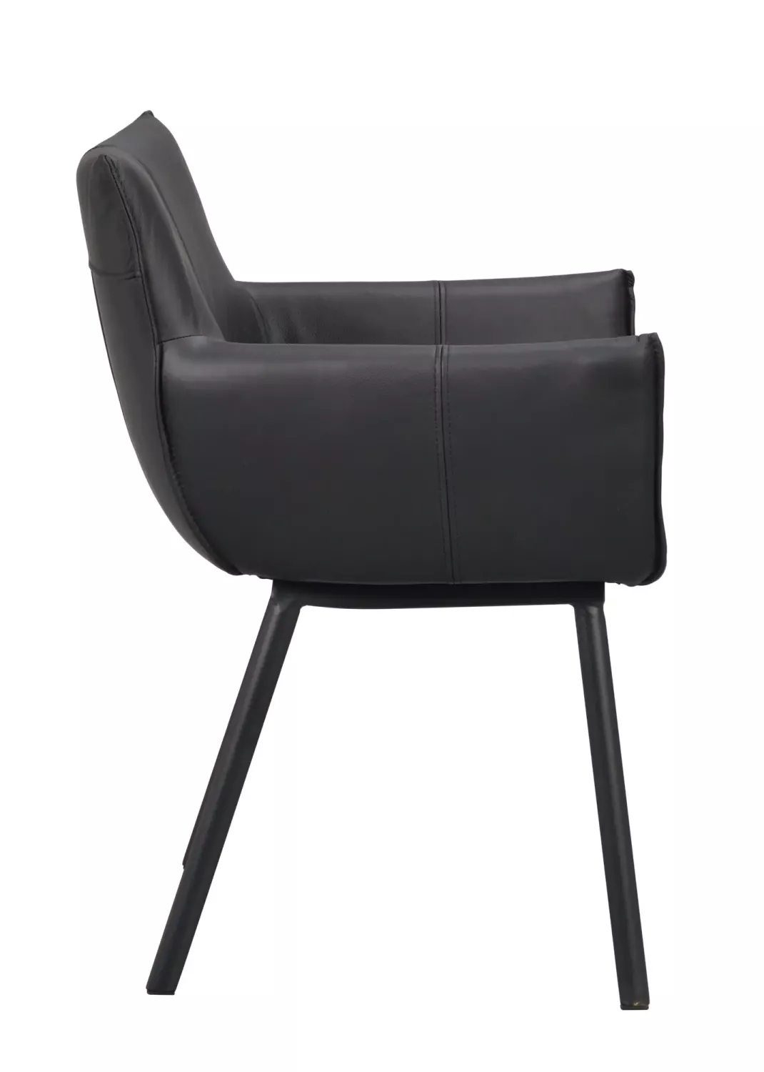 Hinckley karmstol i äkta svart läder med underrede i svart pulverlackad metall är en möbel som är väldigt komfortabel och med ett högt designvärde.