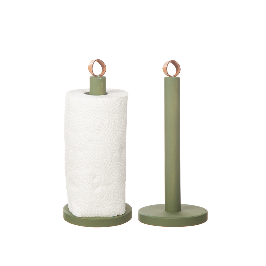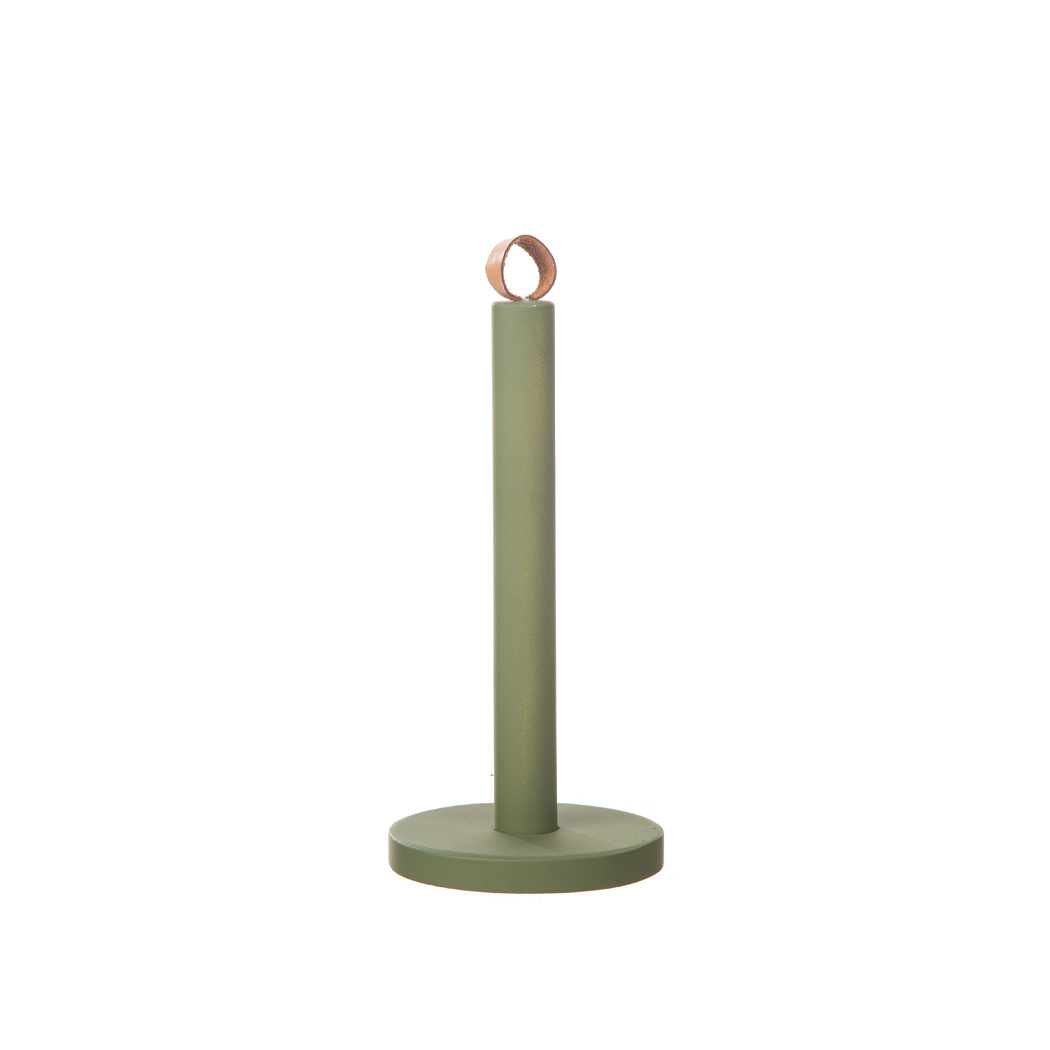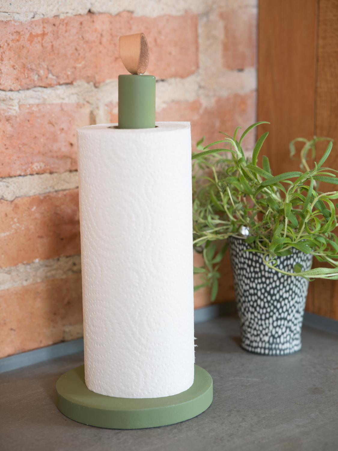 Stilren hushållspappers hållare i en varm grön färg med skinn knopp som gör det lilla extra. Matcha gärna med servetthållaren och brickan i samma färg.