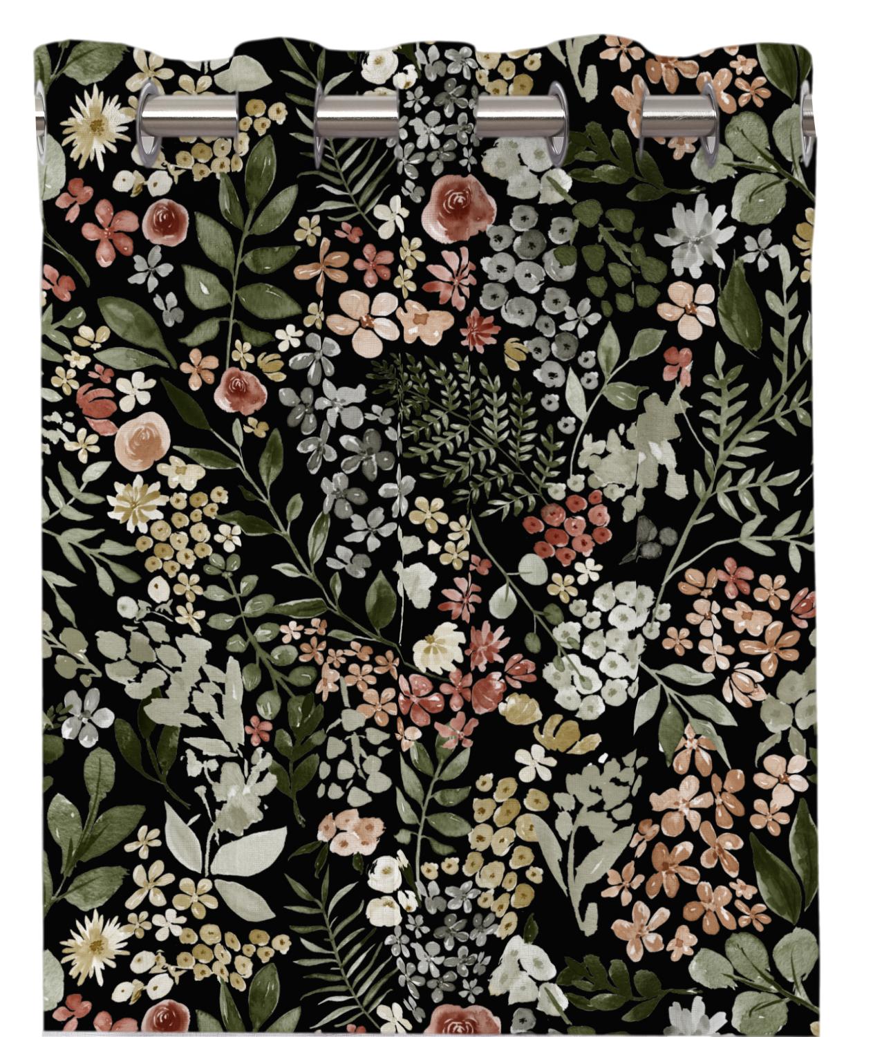 Färdigsydda öljettlängder med härligt blommönster i fina gröna och rosa färger.