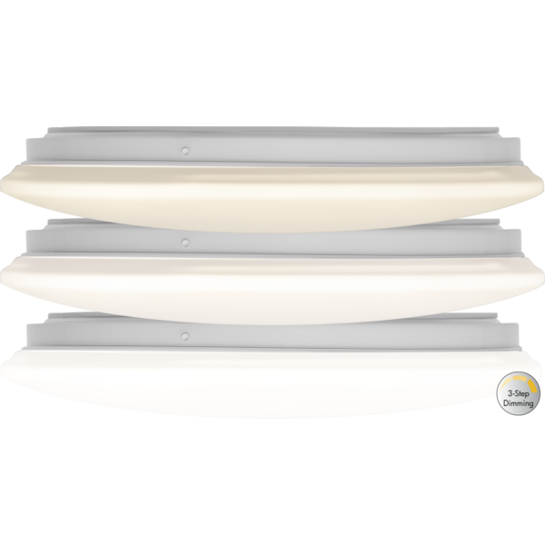LED Plafond med 3-stegs klick funktion. Plafonden tänds på lägsta nivå och de nästa 2 klicken ger högre lumen. Den inbyggda minnesfunktionen kommer ihåg senast valda dimningsposition nästa gång du tänder den.