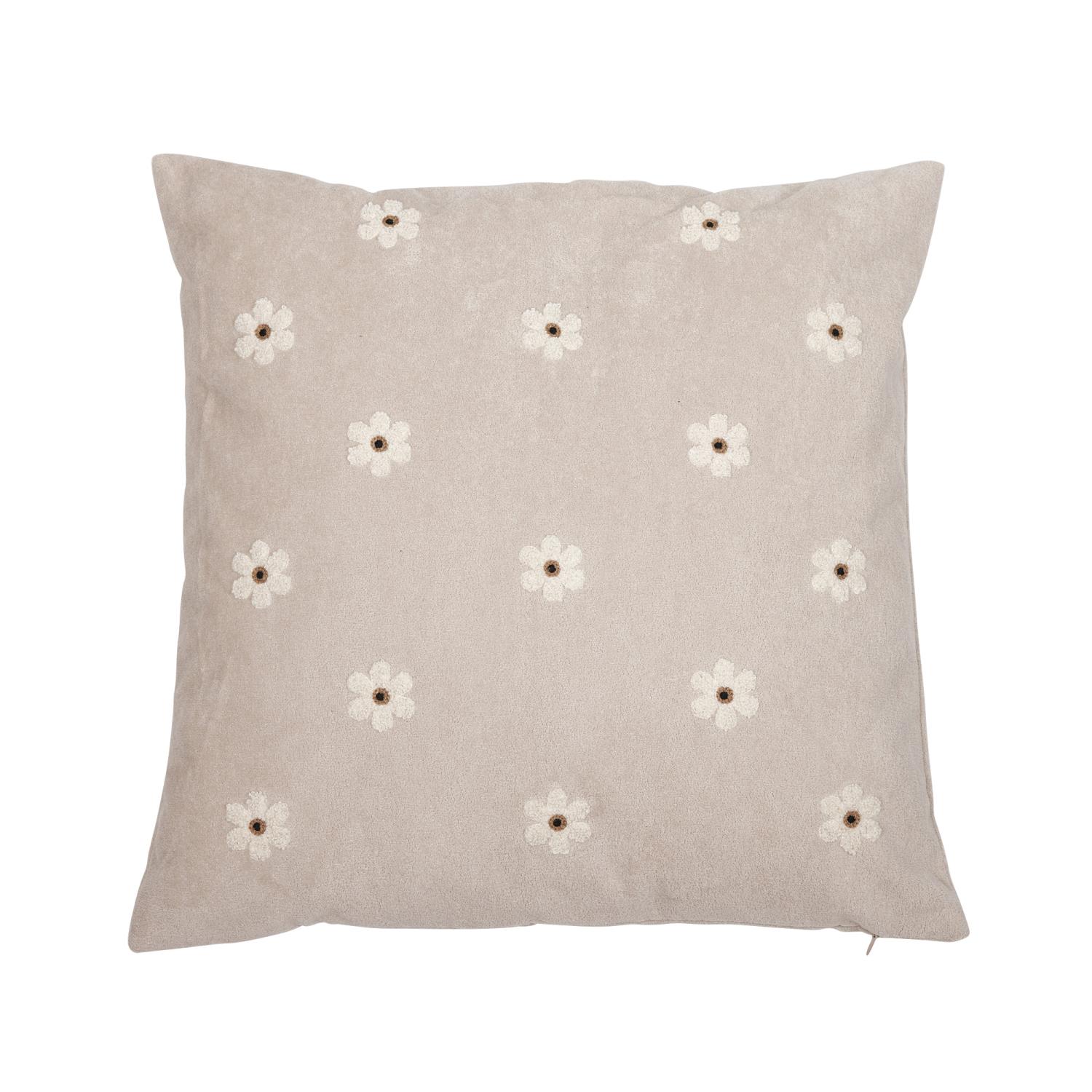 Kuddfodral med små tuftade blommor på som skapar en härligt mjuk och taktil struktur. Det lena tyget är både bekvämt och dekorativt samt ger en varm och ombonad känsla i rummet. Kommer här i en fin sandbeige färg.