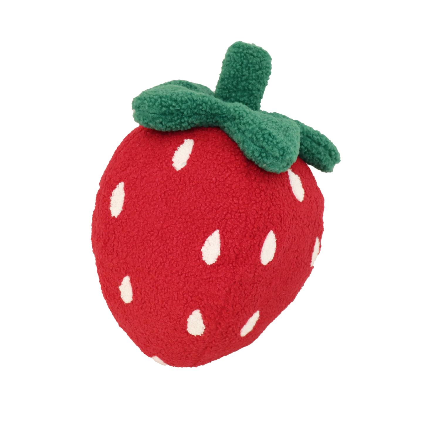 Gullig kudde som ser ut som en jordgubbe. Perfekt som dekoration till barnrummet eller varför inte i uterummet.